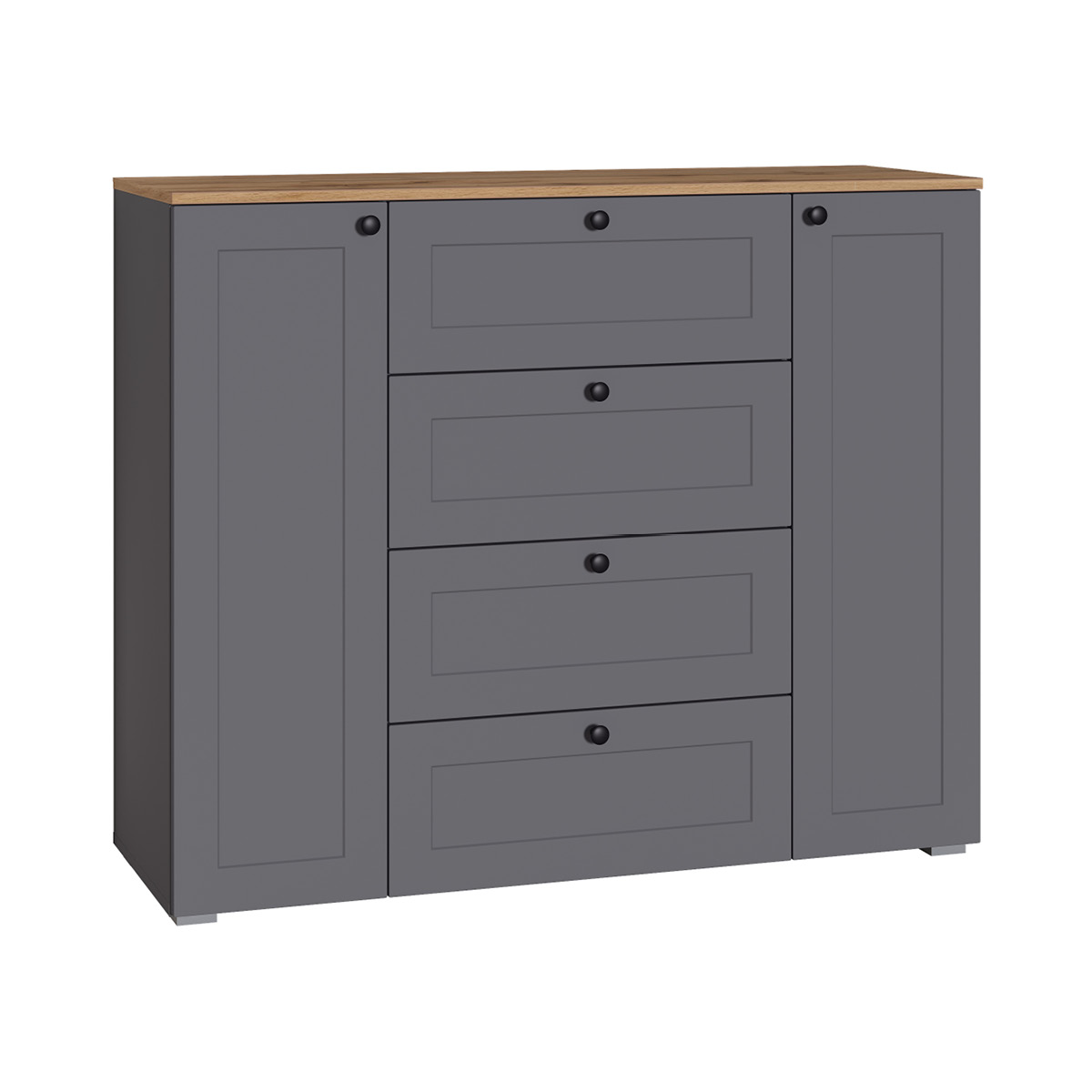 Прихожая доступна в двух цветовых решениях – белый/графит в сочетании с теплым древесным декором.