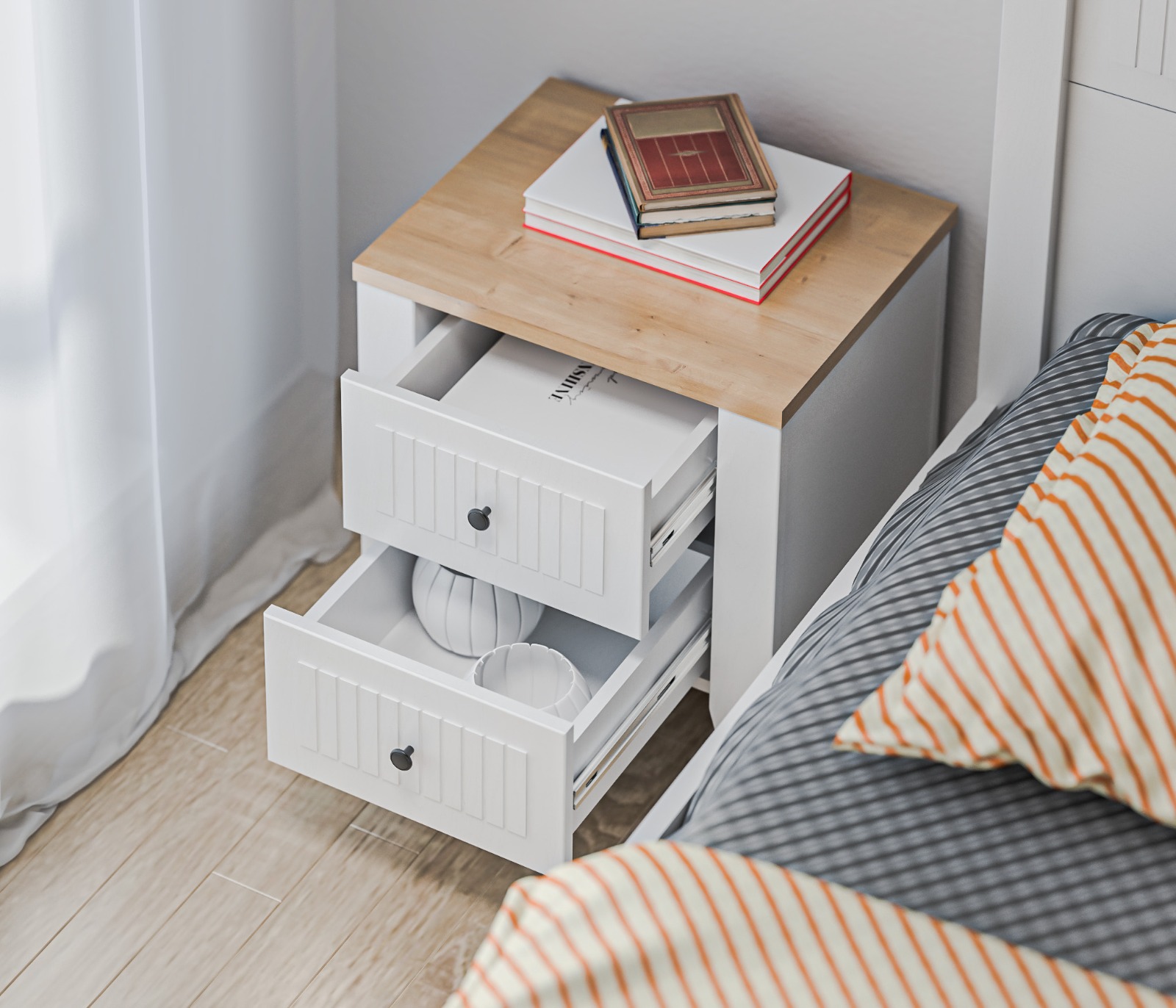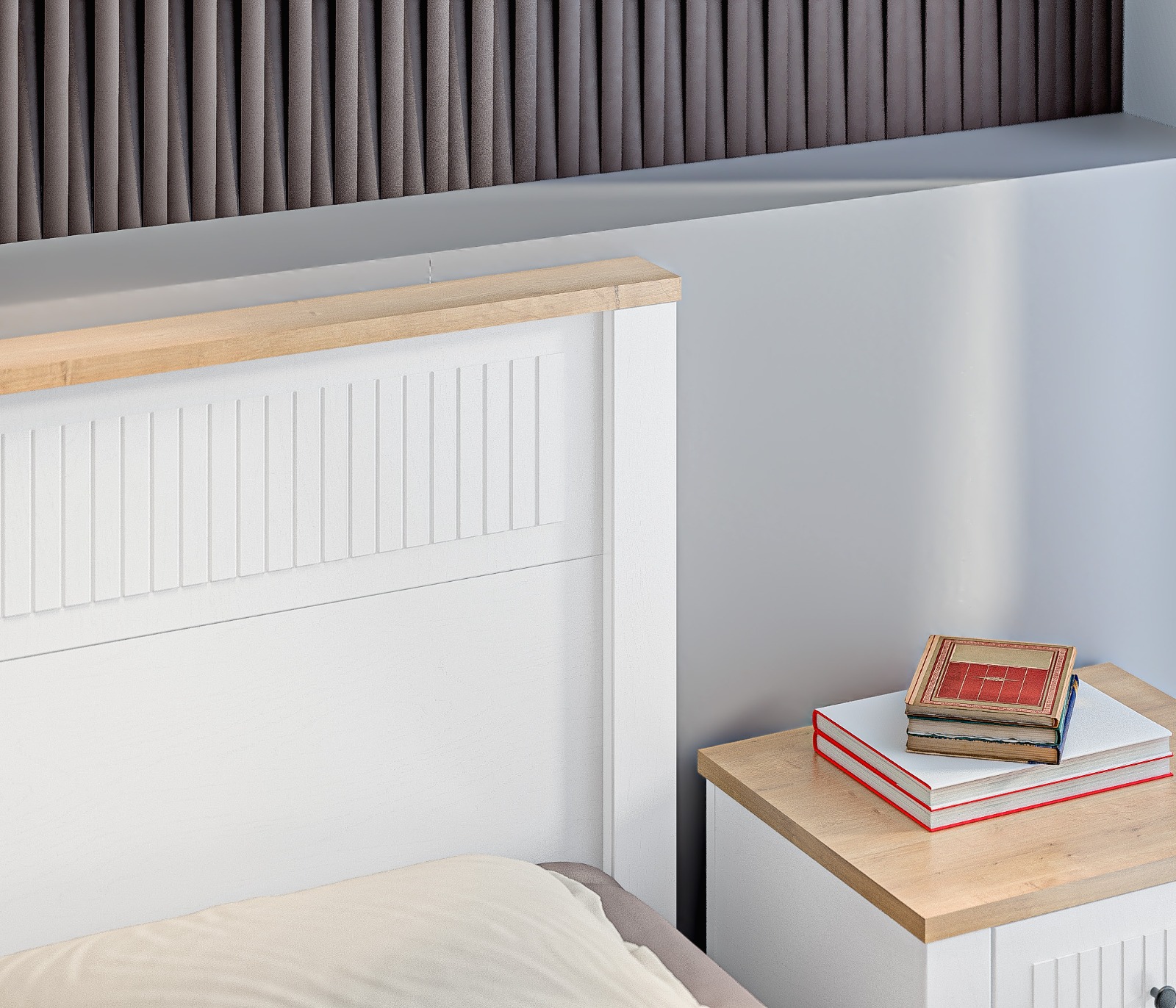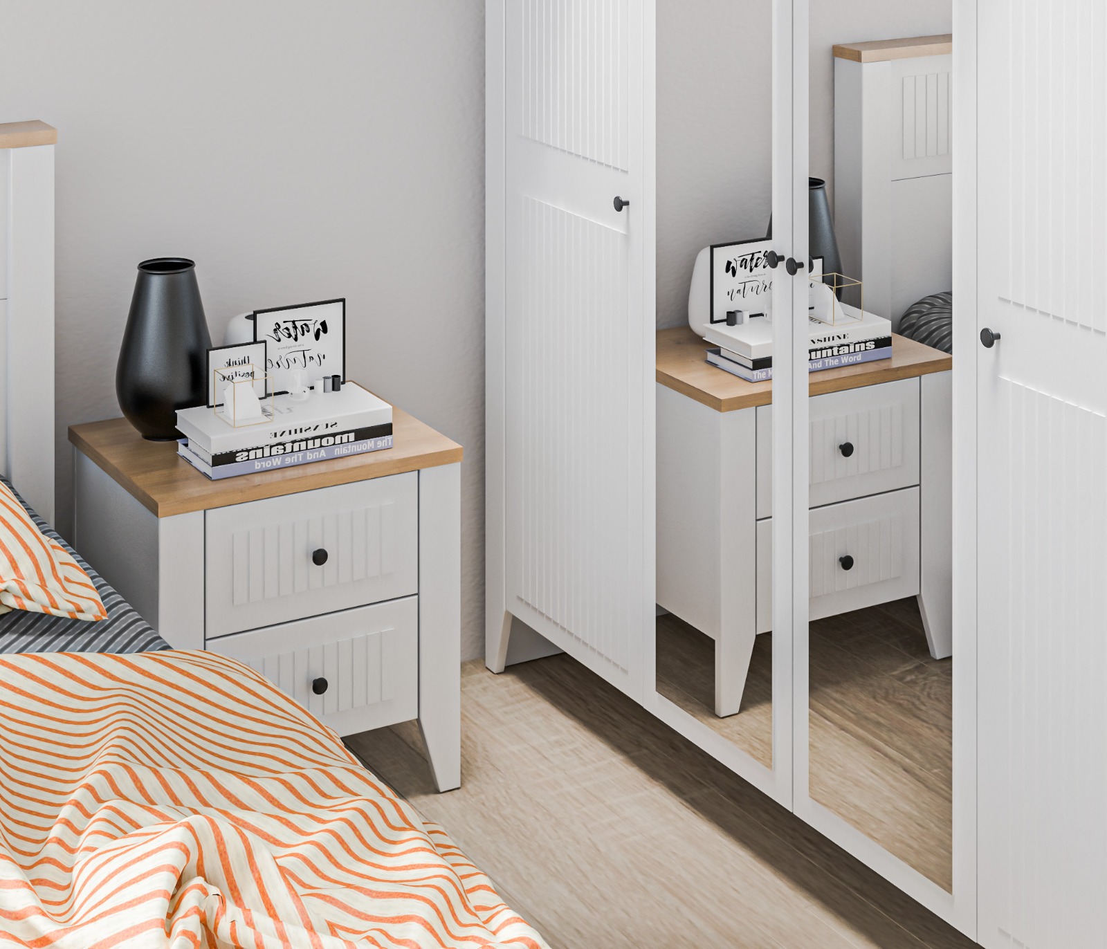 • Спальня выполнена в нежном и светлом оттенке Белый Альпийский, который визуально расширяет пространство и придаёт комнате лёгкость.