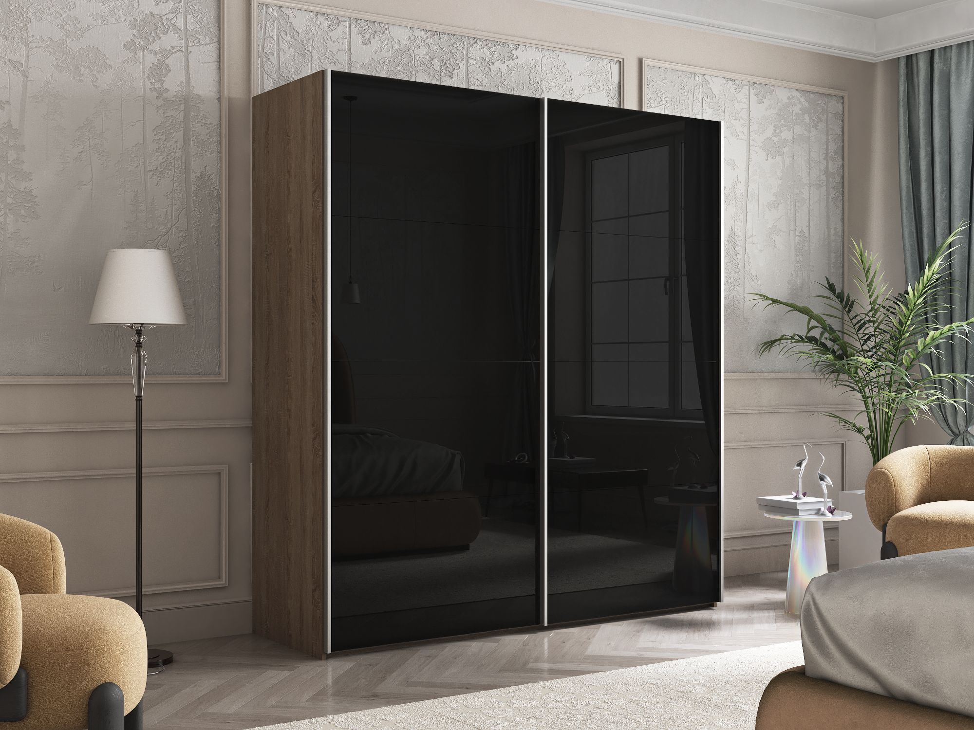 Отзывы о Столплит Шкаф Эста дуо Стекло черное 2400 х 2000 х 660 Дуб Бардолино