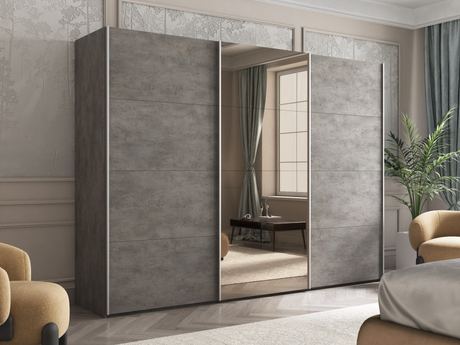 Отзывы о Столплит Шкаф-купе Эста ДСП+Зеркало+ДСП 300х66х240 Бетон серый