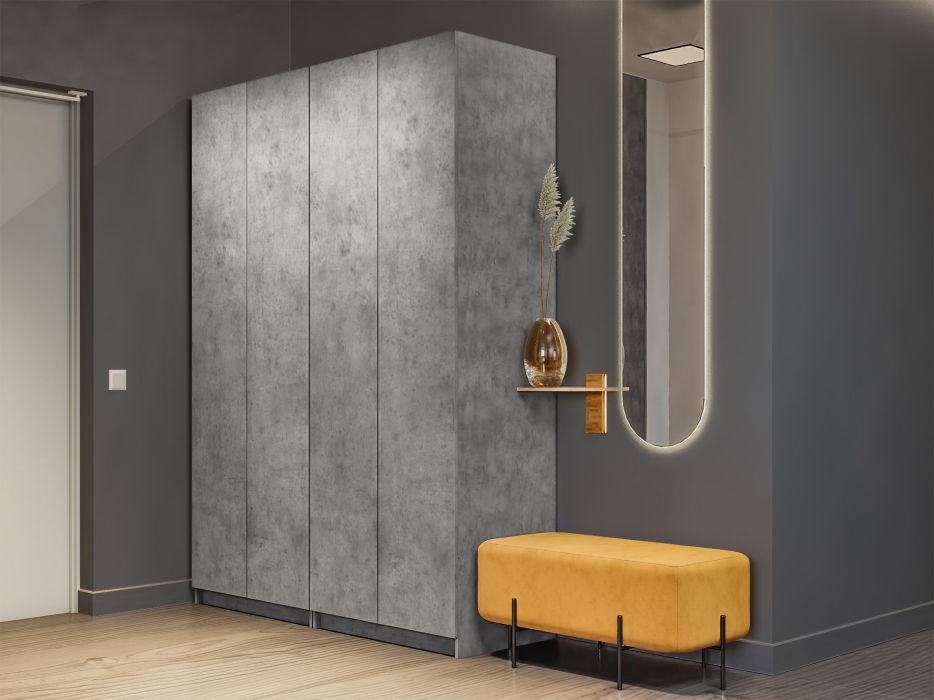 Отзывы о Столплит Распашной шкаф Локер 800+800 (Гармошка с системой Push to Move/Левый) с полками и ящиками слева Бетон