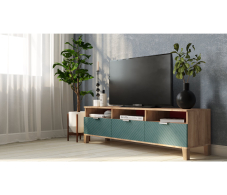 Тумба под ТВ этой модели сделан из матового мдф и лдсп, что обеспечивает его экологичность и долговечность.