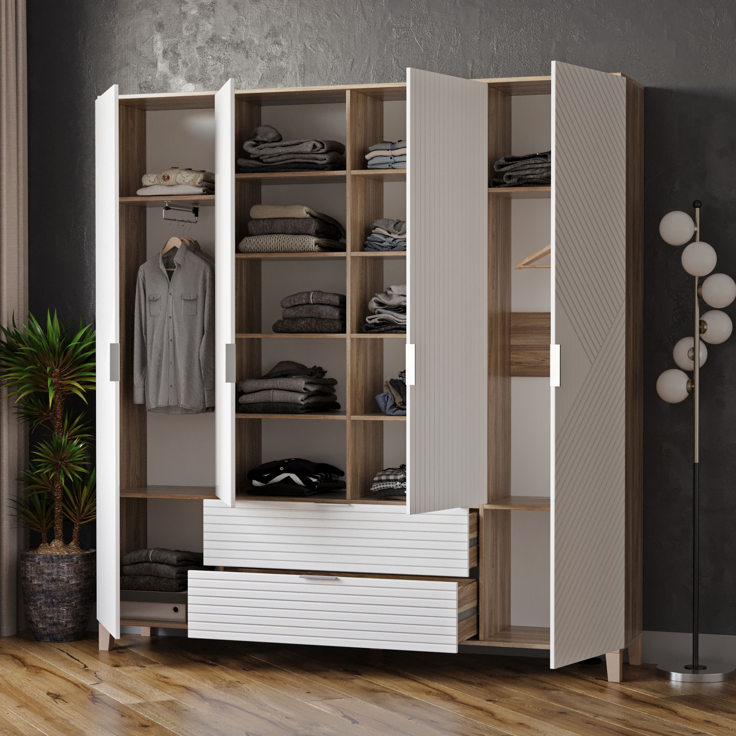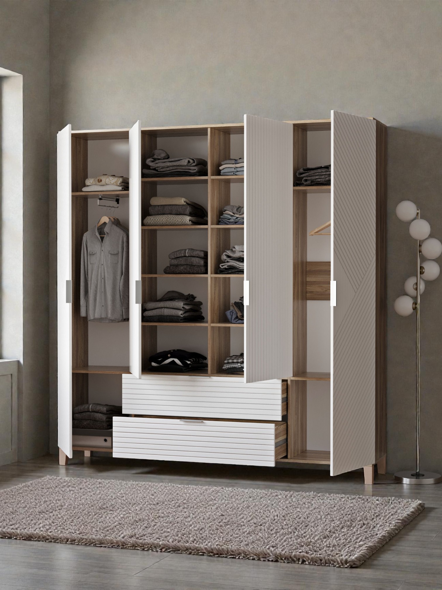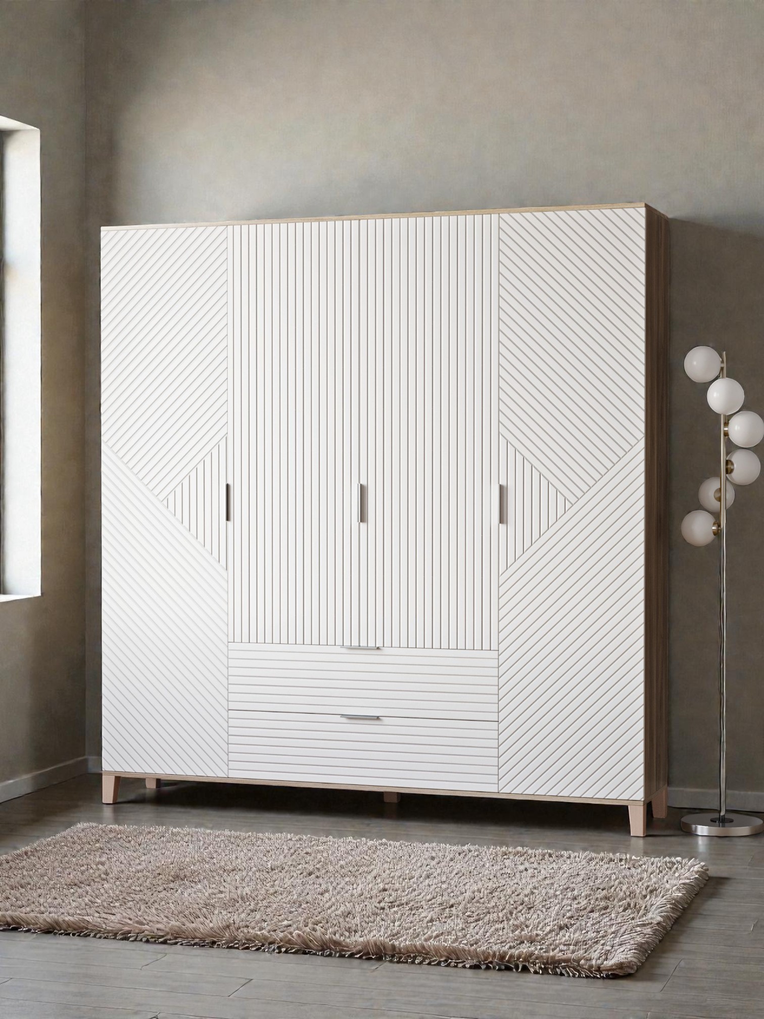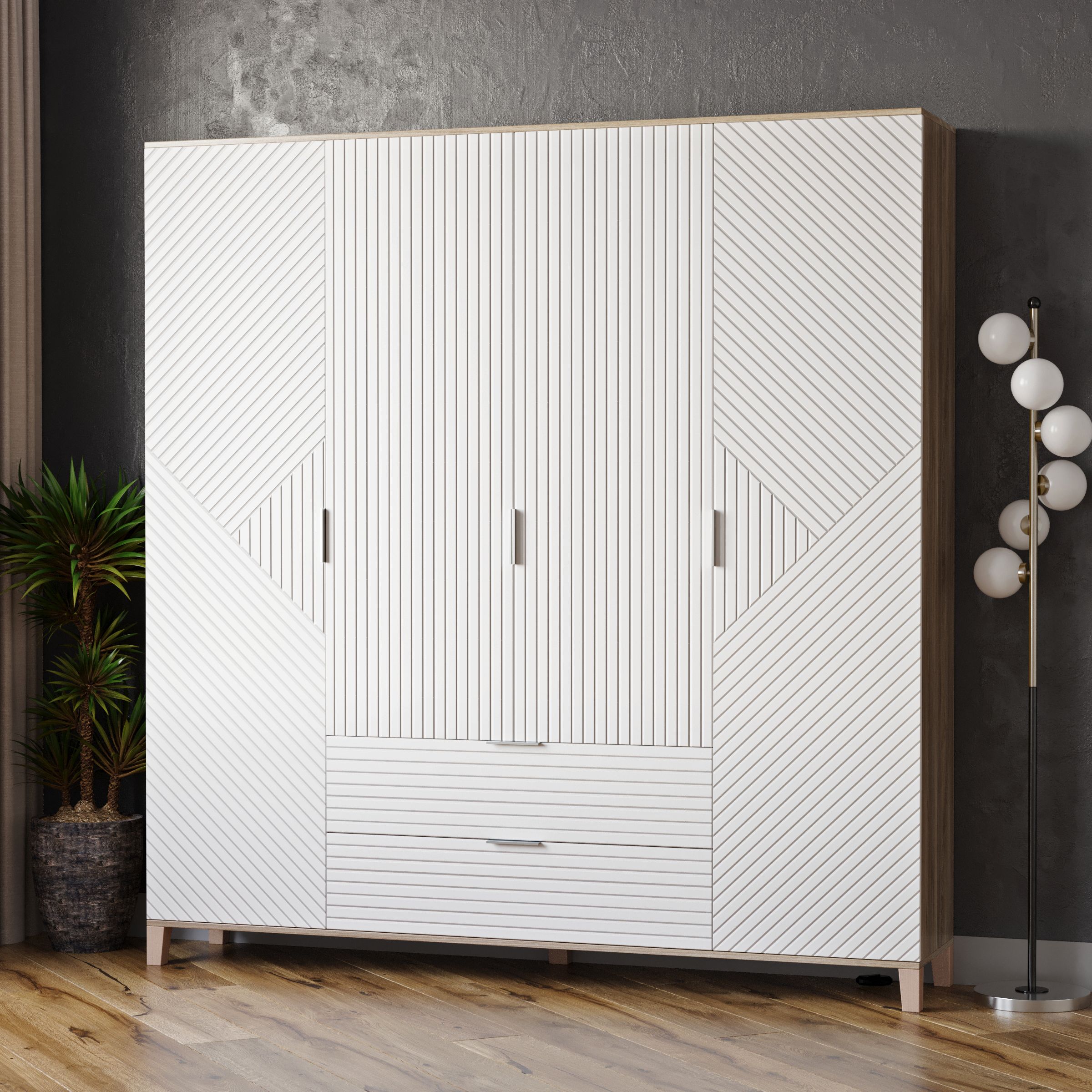 Шкафы Марвин, выполненные в скандинавском стиле, органично дополнят интерьер любой комнаты. Ножки из массива бука, геометрическая фрезеровка на фасадах, сочетание цветов отличительная черта серии Шкафов Марвин.