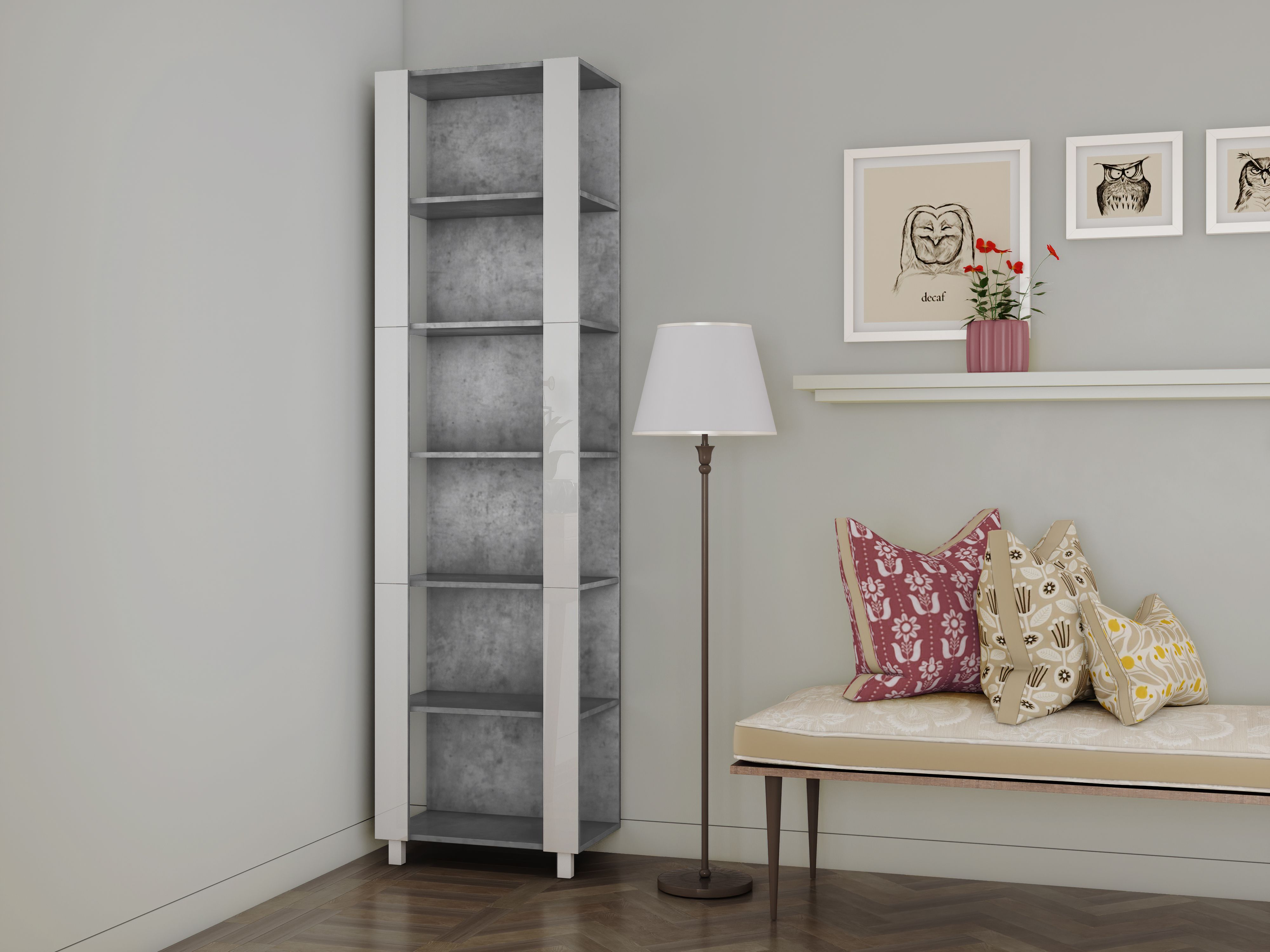 Отзывы о Столплит Стеллаж модульный Универсальный 35х51х230 Белое стекло Бетон