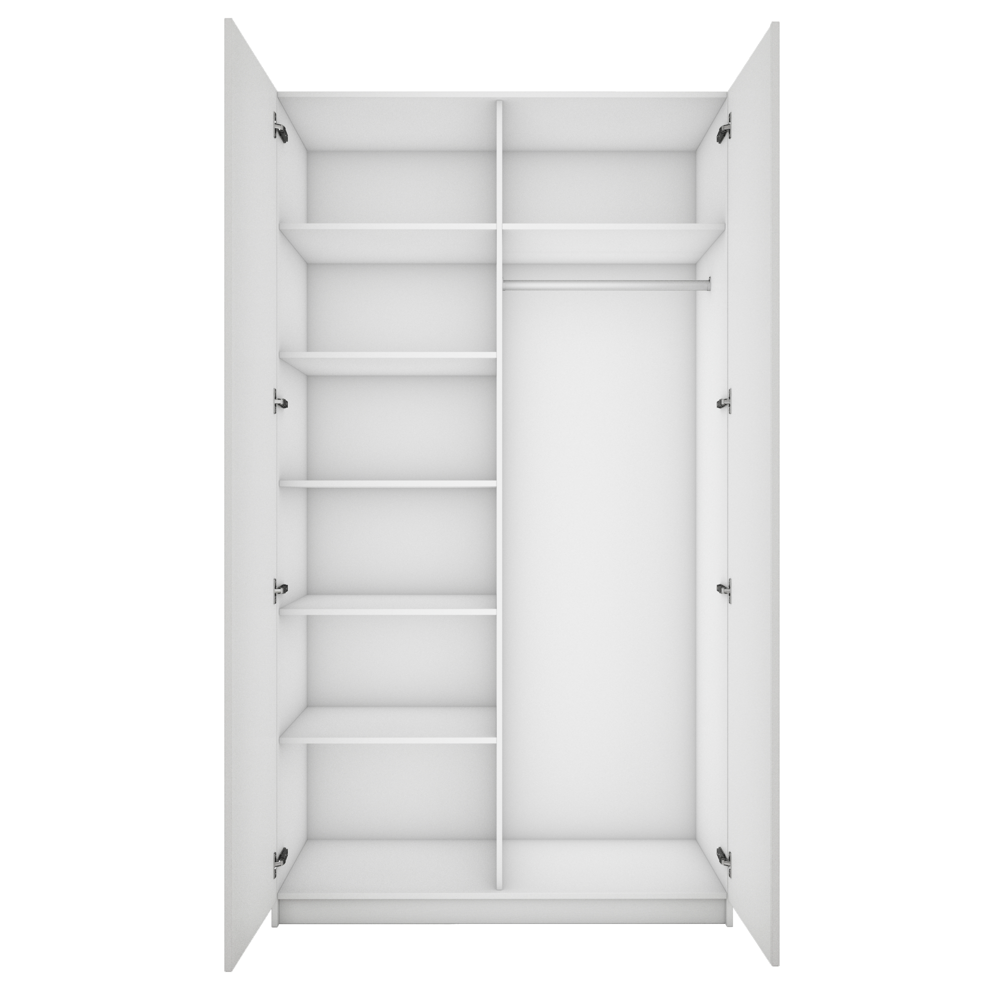 Благодаря надежным полкодержателям - штифтам, полки шкафа могут выдерживать до 15 кг, штанга выдерживает нагрузку до 60 кг. Вы сможете убрать сезонные вещи, постельное белье на верхние полки. Распашной шкаф оснащен долговечной, ударостойкой кромкой ПВХ, которая защищает его торцы от сколов и повреждений, что обеспечит вам комфортное и долгое использование гардероба. Распашная система дверей Titus B-Type обеспечивает надежное прилегание дверцы к корпусу шкафа и высокую износостойкость. Механизм не деформируется при значительных нагрузках и максимально практичен в эксплуатации. Шкаф оснащен удобной минималистичной ручкой, изготовленной из алюминия. В производстве используется безопасное ЛДСП международного класса Е1, что способствует безопасному использованию на протяжении всего срока эксплуатации.