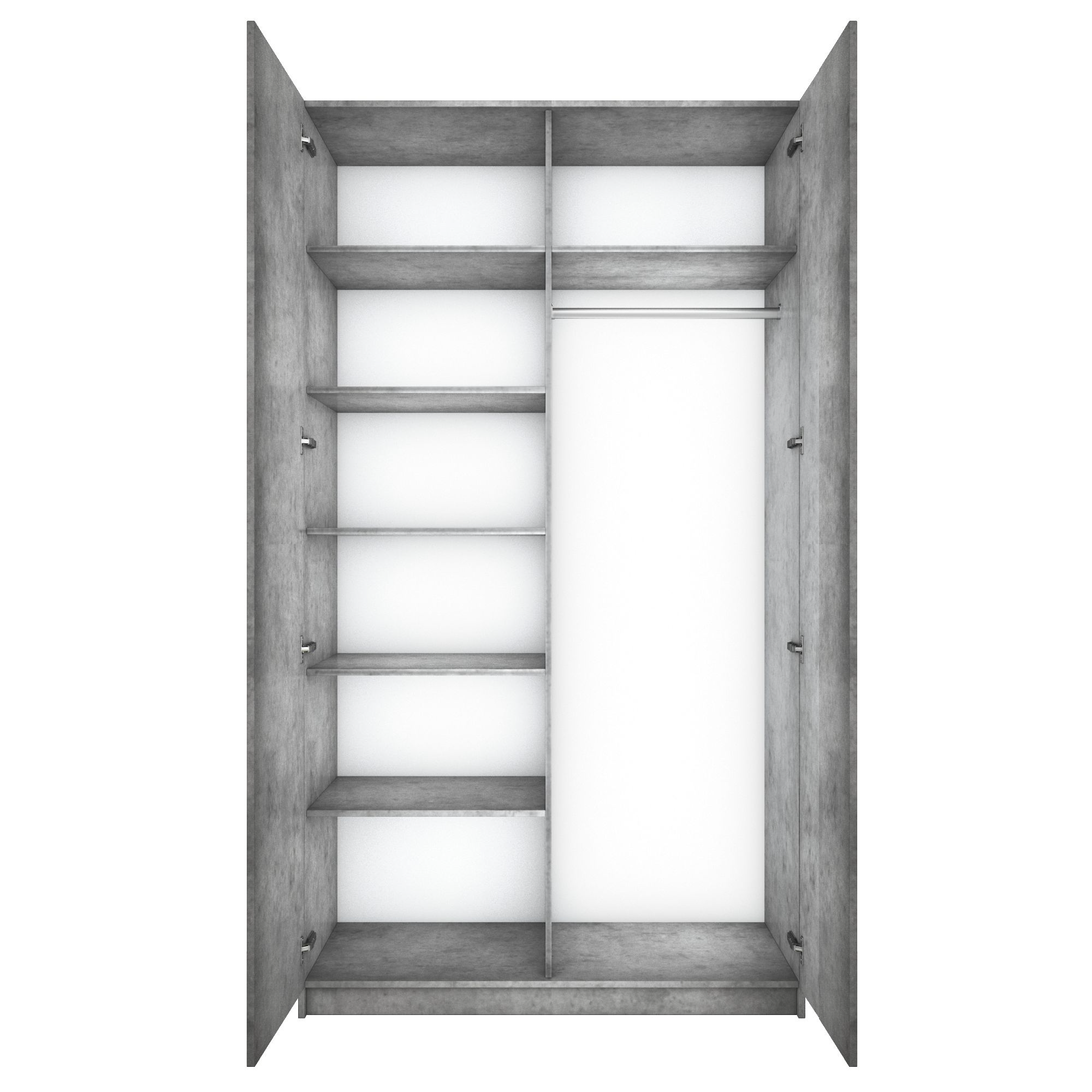 Благодаря надежным полкодержателям - штифтам, полки шкафа могут выдерживать до 15 кг, штанга выдерживает нагрузку до 60 кг. Вы сможете убрать сезонные вещи, постельное белье на верхние полки. Распашной шкаф оснащен долговечной, ударостойкой кромкой ПВХ, которая защищает его торцы от сколов и повреждений, что обеспечит вам комфортное и долгое использование гардероба. Распашная система дверей Titus B-Type обеспечивает надежное прилегание дверцы к корпусу шкафа и высокую износостойкость. Механизм не деформируется при значительных нагрузках и максимально практичен в эксплуатации. Шкаф оснащен удобной минималистичной ручкой, изготовленной из алюминия. В производстве используется безопасное ЛДСП международного класса Е1, что способствует безопасному использованию на протяжении всего срока эксплуатации.