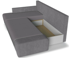 Угловой диван "Олимп-1" имеет лаконичный дизайн, однако не лишен определенной доли изящности: спинка доплнена тремя мягкими подушками, все элементы дивана имеют правильную форму, отсутствие декора позволяет использовать диванв большинстве современных интерьеров. Такой диван станет любимым местом сбора друзей и близких. Мяшкие приспинные подушки позволят занять наиболее комфортное положение тела. Широкий подлокотник придает дивану наиболее уютный вид. Внутри установлен механизм трансформации "Еврокнижка", за счет которого диван в два счета превращается в удобное спальное место для двух человек. Для хранения белья под сиденьем предусмотрен ящик.