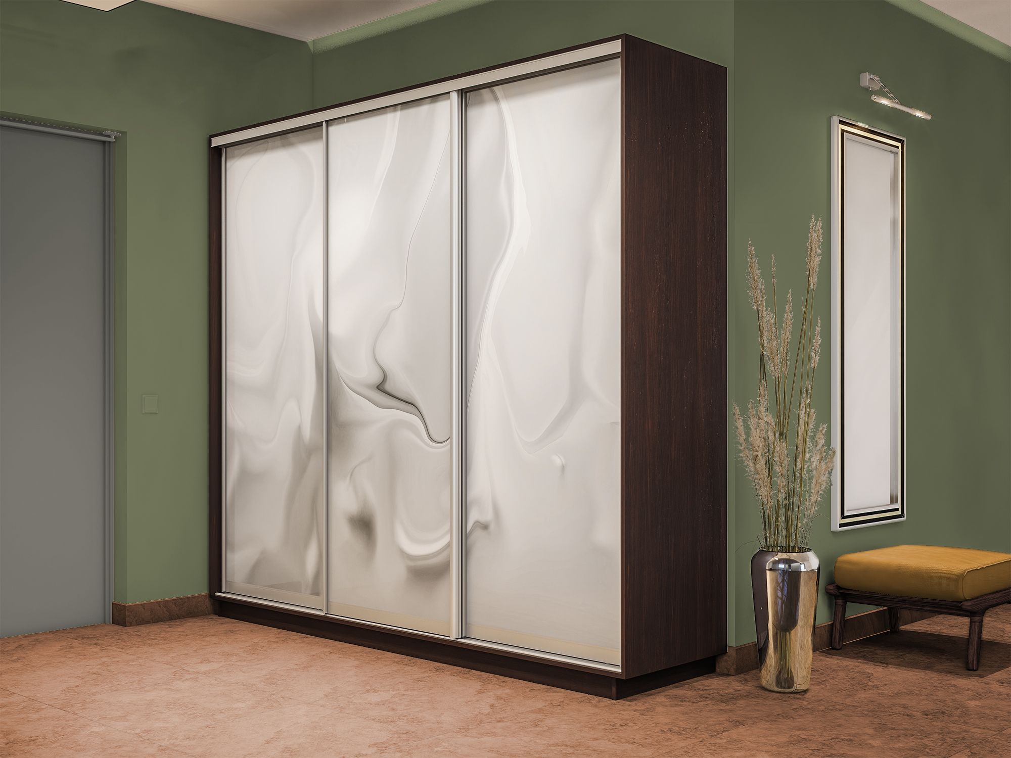 Отзывы о Столплит Шкаф-купе Экспресс 3-х дверный Фотопечать Шелк Стекла 240х45х220 Венге