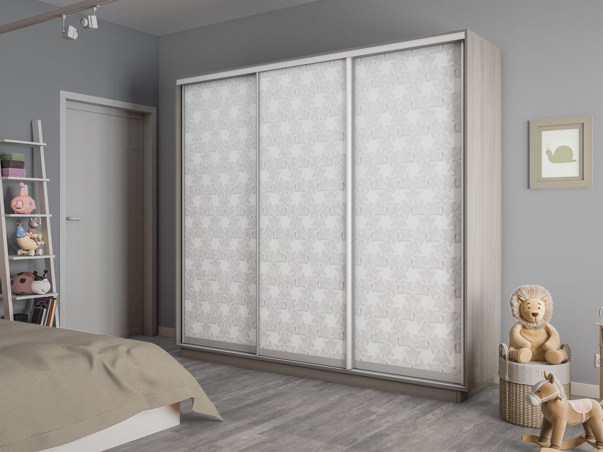 Отзывы о Столплит Шкаф-купе Экспресс 3-х дверный Фотопечать Калейдоскоп Стекла 210х60х220 Ясень шимо светлый
