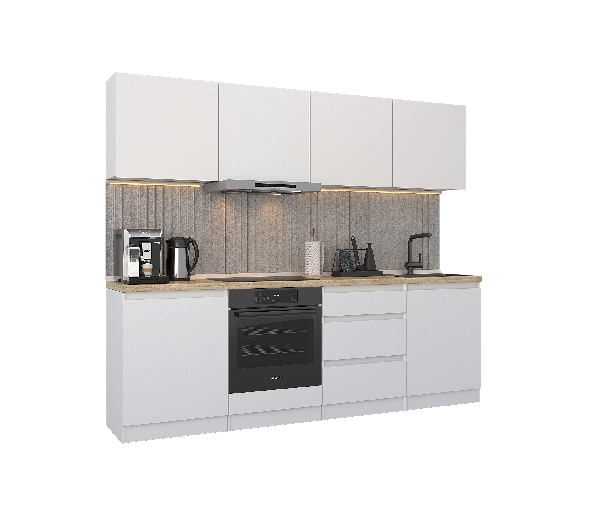 Кухонный гарнитур Леон прямой 240 см, белый (Белый)