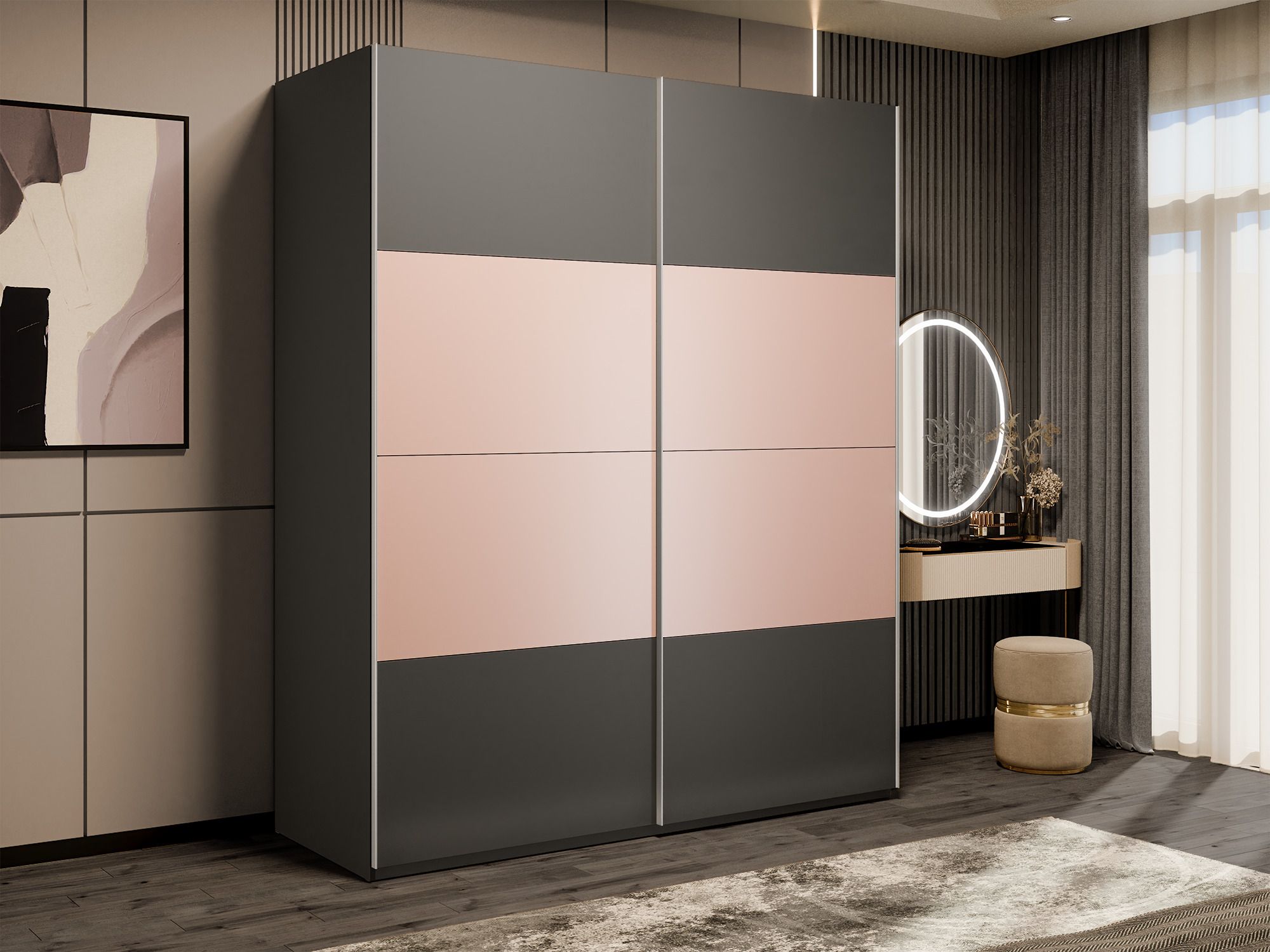 Отзывы о Столплит Шкаф-купе Эста 2-х дверный ДСП/Стекла пудра/Доводчик 200х66х240 Диамант серый