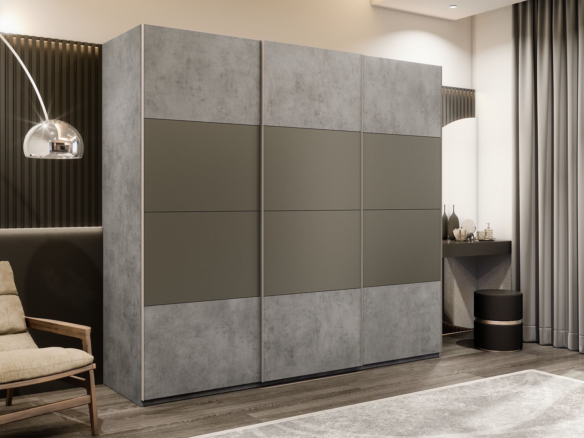 Шкаф-купе Эста 3-х дверный ДСП/Стекла хаки/Доводчик 300х66х240 (Бетон) Код I0000408492