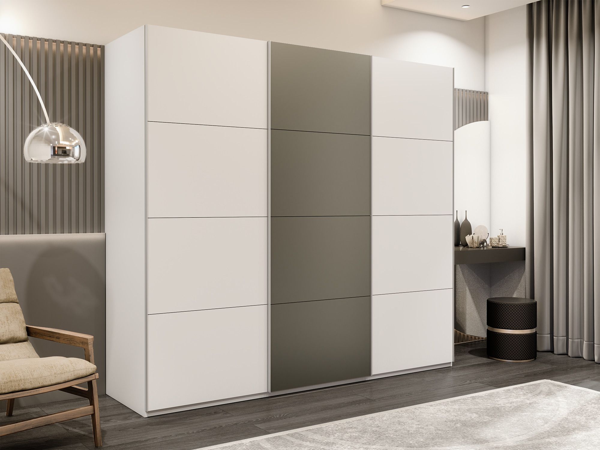 Отзывы о Столплит Шкаф-купе Эста 3-х дверный ДСП/Стекла хаки/Доводчик 240х66х240 Белый