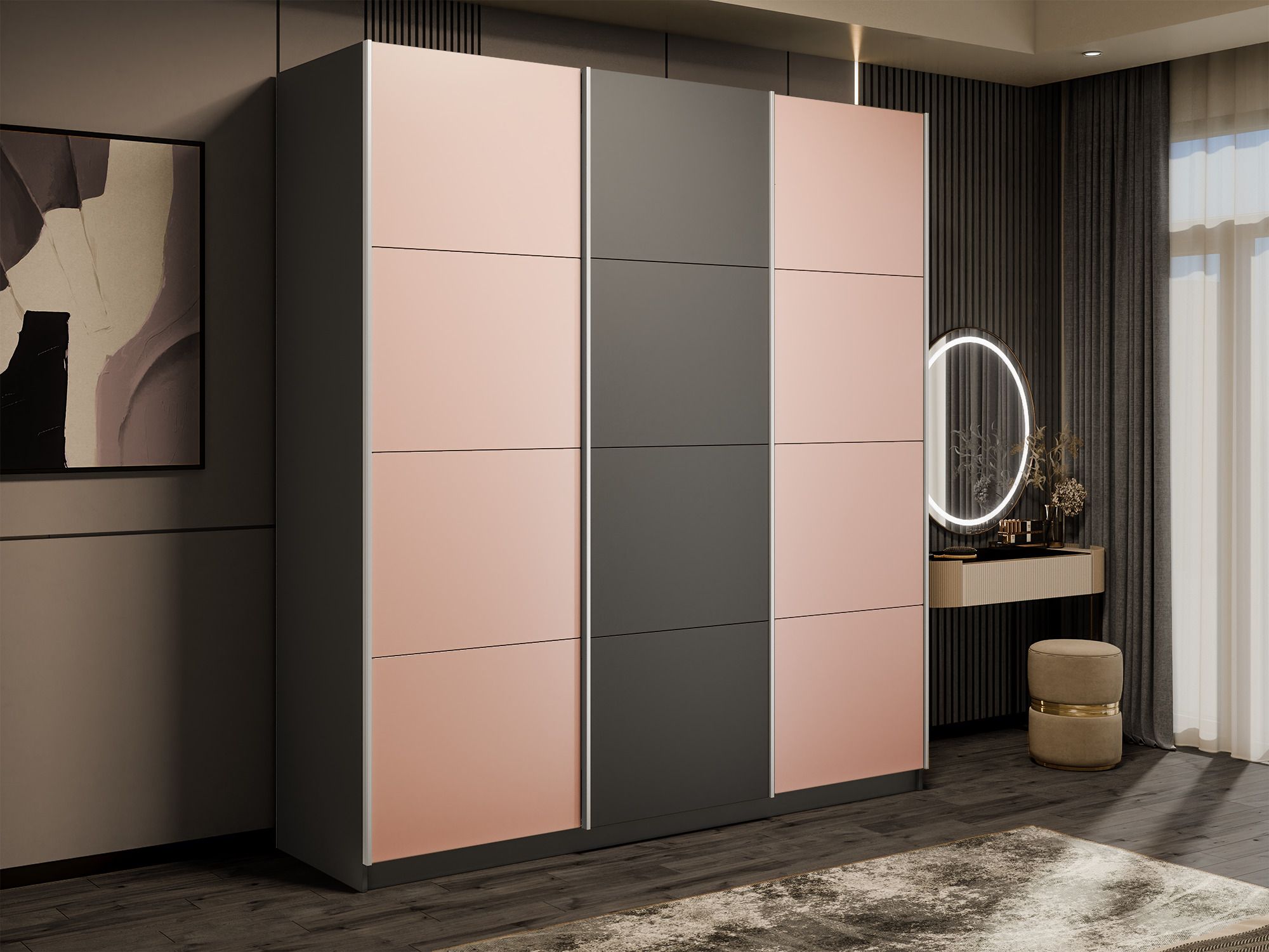 Отзывы о Столплит Шкаф-купе Эста 3-х дверный ДСП/Стекла пудра/Доводчик 300х66х240 Диамант серый