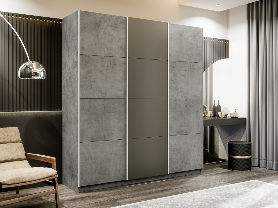 Отзывы о Столплит Шкаф-купе Прайм 3-х дверный Стекла хаки/ДСП/Доводчики 180х57х230 Бетон