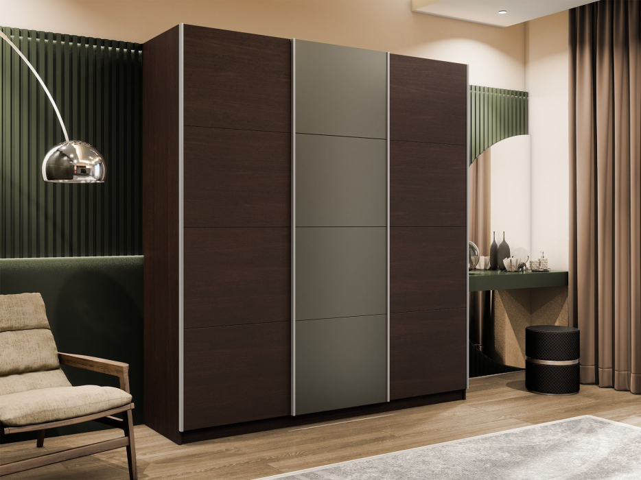Отзывы о Столплит Шкаф-купе Прайм 3-х дверный Стекла хаки/ДСП/Доводчики 180х57х230 Венге