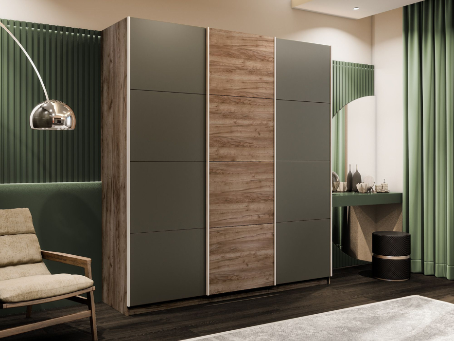 Отзывы о Столплит Шкаф-купе Прайм 3-х дверный Стекла хаки/ДСП/Доводчики 210х57х230 Дуб/крафт/табак