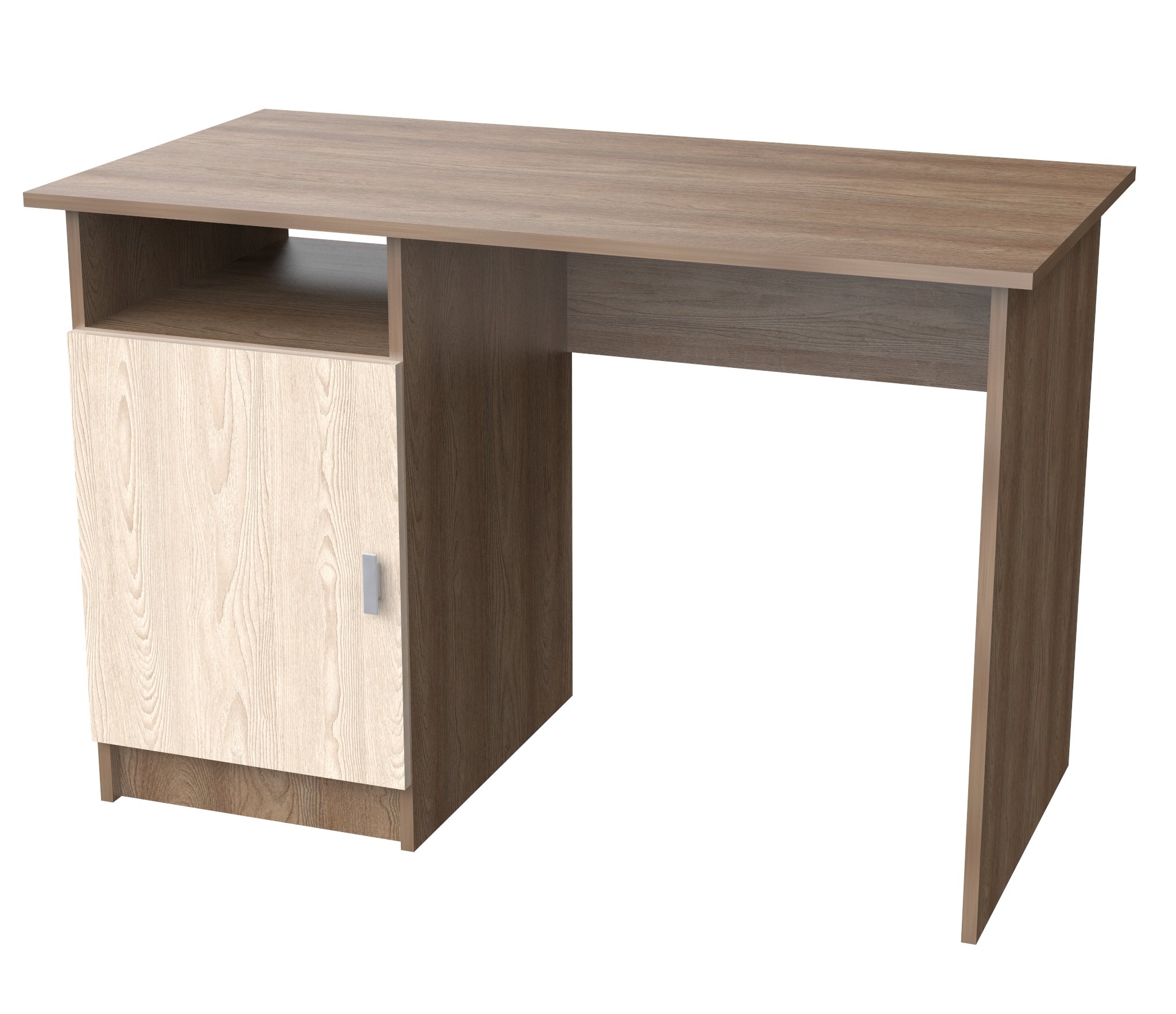 Стол СТ-1 изготовлен из ЛДСП.Оснащён тумбой с дверью,за дверцей полка съёмная).Ширина 110 см,Выс 75 см,глуб 57 см.Удобен в использовании как для кабинета,так и для школьников.