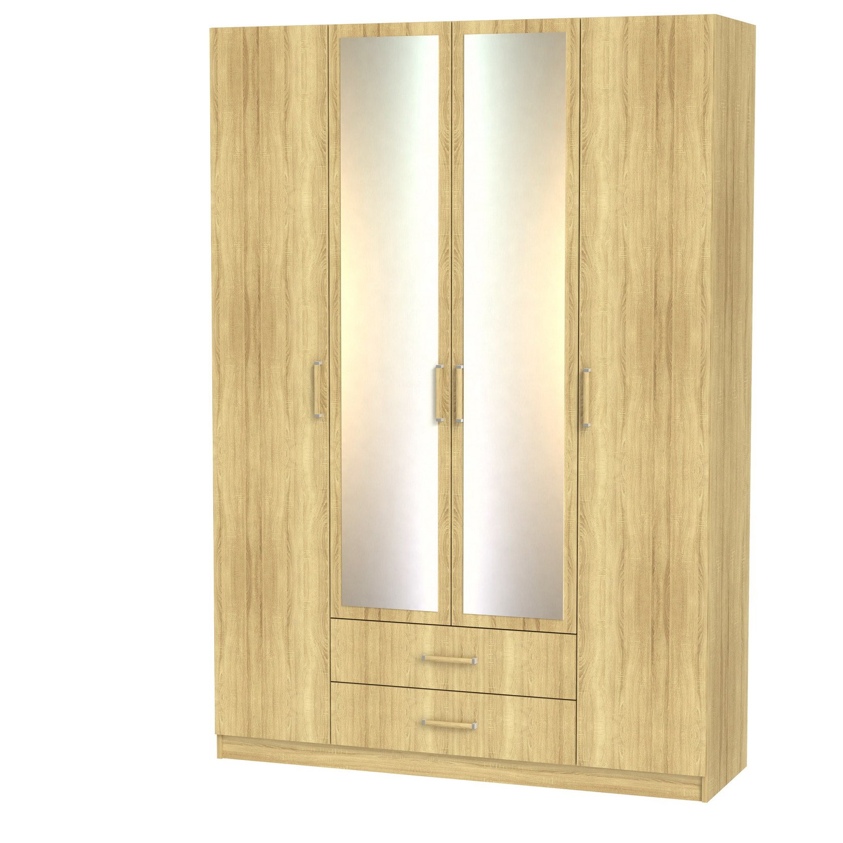 Феникс М-15 Корпус шкафа выполнен из Ламинированной ДСП высокого качества с насыщенным цветом..В данной моделе используются зеркала, .Шириною 140 см., красивый и удобный четырехстворчатый шкаф. По бокам слева и справа секции, по четыре полки в каждой. В центре сверху узкая ниша, под ней большая секция со штангой для одежды. В самом низу два выдвижных ящика. Два зеркала в данной моделе уже включены в стоимость.