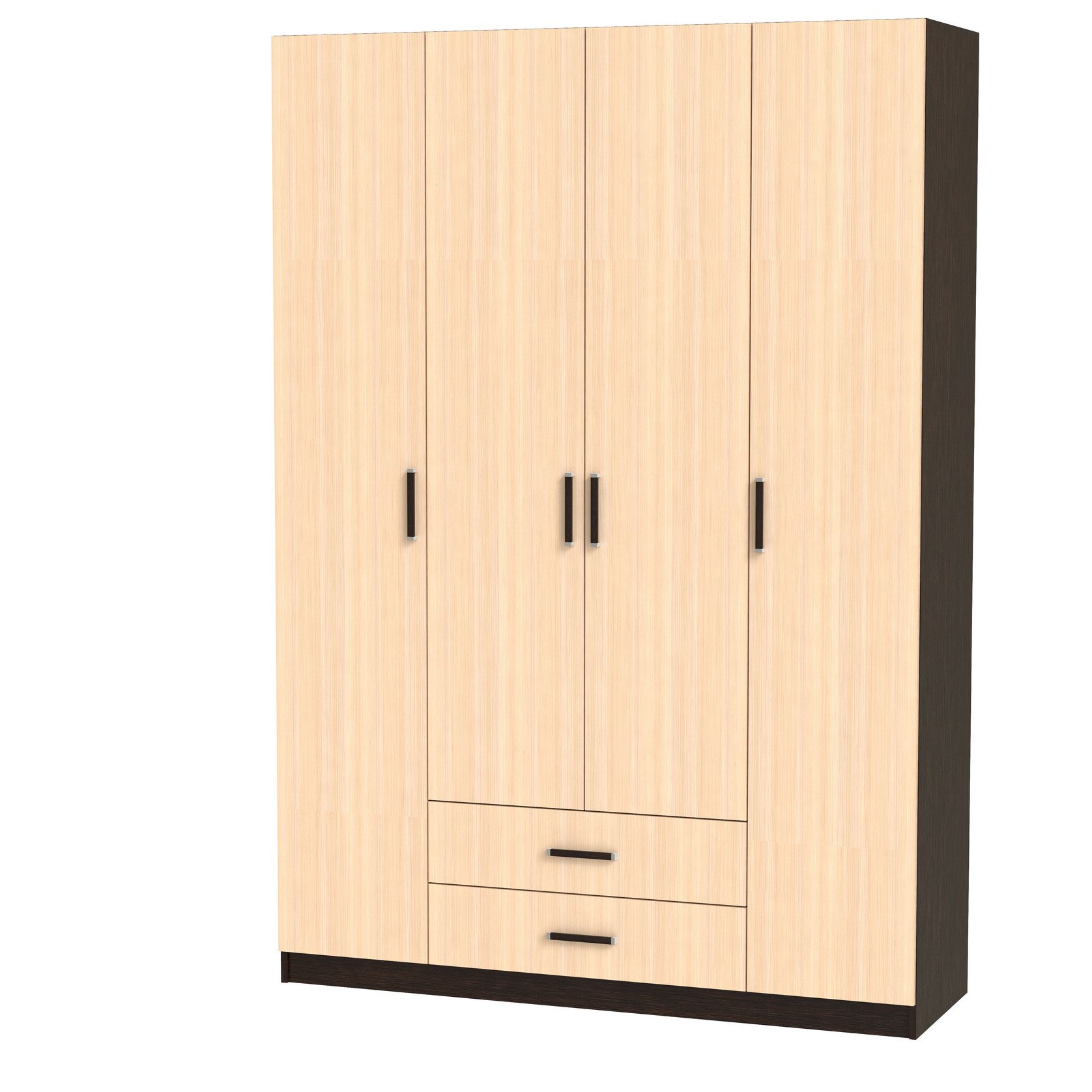 Феникс М-13 Корпус шкафа выполнен из Ламинированной ДСП высокого качества с насыщенным цветом. Шириною 160 см., красивый четырехстворчатый шкаф. Слева и справа секции, по четыре полки в каждой.