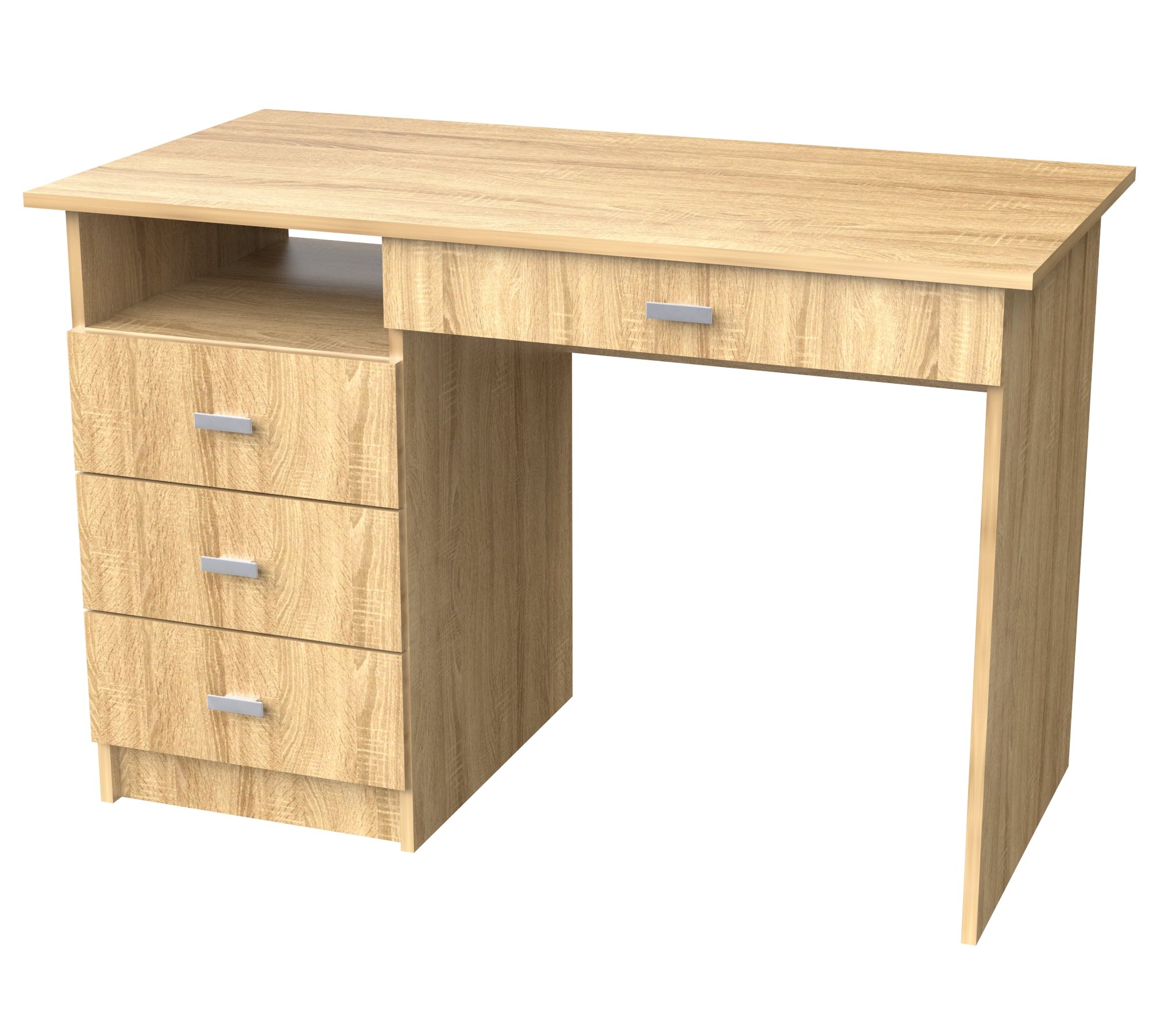 Стол СТ-6 изготовлен из ЛДСП.Оснащён тумбой с выдвижными ящиками+большой ящик с другой стороны.Сборка только как на фото,на другую сторону не предусмотрено.Ширина 110 см,Выс 75 см,глуб 57 см.Удобен в использовании как для кабинета,так и для школьников.