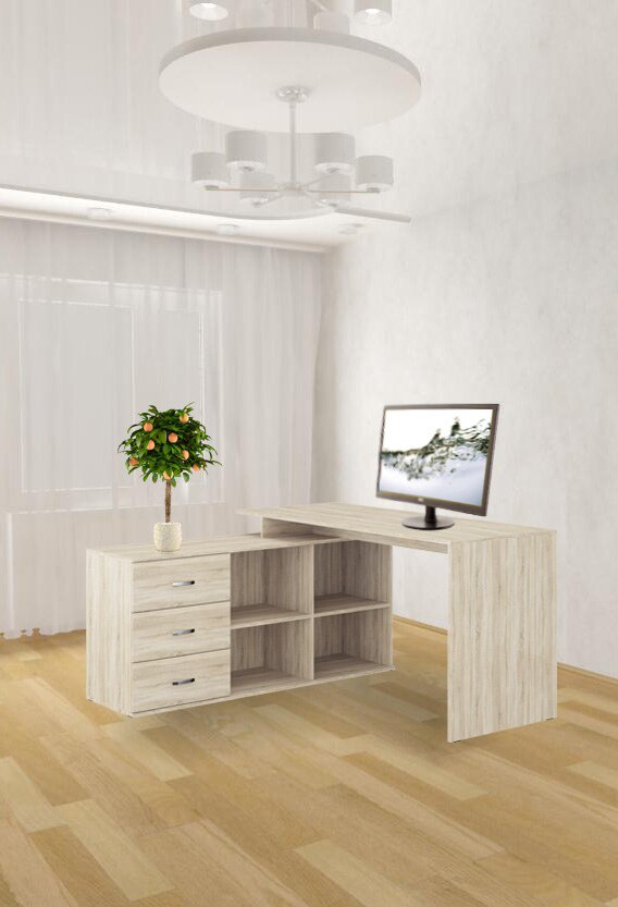 Компьютерный стол СК-16 выполнен из качественной ЛДСП в лаконичном деловом стиле: строгие геометрические линии, , минимум фурнитуры. Направляющие шариковые.Благодаря продуманной конструкции, все необходимое для работы всегда будет под рукой: просторная прямоугольная столешница Размером ДЛ 145 см,Шир 40 см и расположенный к ней под прямым углом модуль с полками и тремя выдвижными ящиками Размером ДЛ 140 см,шир 40 см гармонично сочетаются в рабочем пространстве.Высота стола 75 см.2 ниши с полками могут использоваться под процессор ,так как полки съёмные(45 см шир и высота 57 см каждой нишиниши),Выдвижные ящики шир 47 см,глуб 38 см.