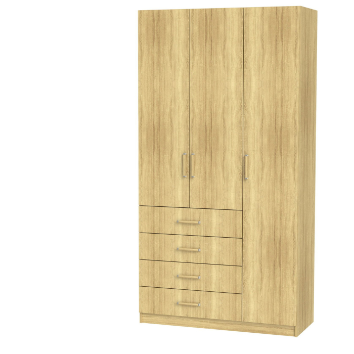 Феникс М-9 Корпус шкафа выполнен из Ламинированной ДСП высокого качества с насыщенным цветом..Ширина шкафа 120 см., большая и функциональная модель. Справа за длинной дверцей пять кубических ниш. Слева сверху вниз, узкая ниша, секция со штангой для одежды и четыре достаточно вместительных выдвижных ящика.
