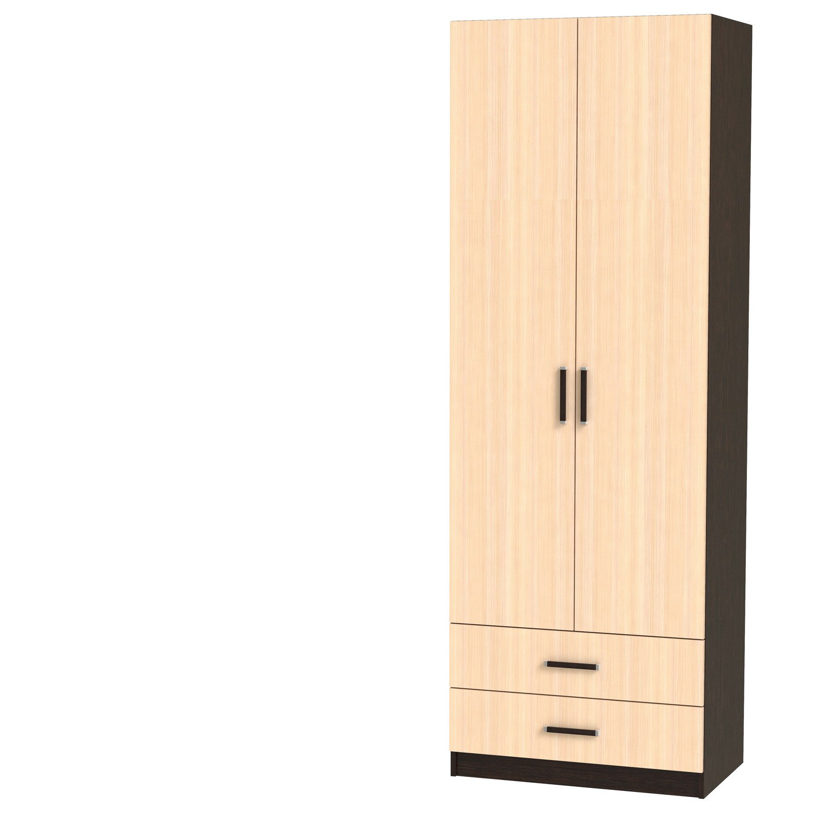 Феникс М-5 Корпус шкафа выполнен из Ламинированной ДСП высокого качества с насыщенным цветом. Шириною 80 см., эта многофункциональная модель несет в себе следующие элементы. За распашными дверьми штанга для одежды ,над штангой полка для головных уборов.Внизу расположены два выдвижных ящика.