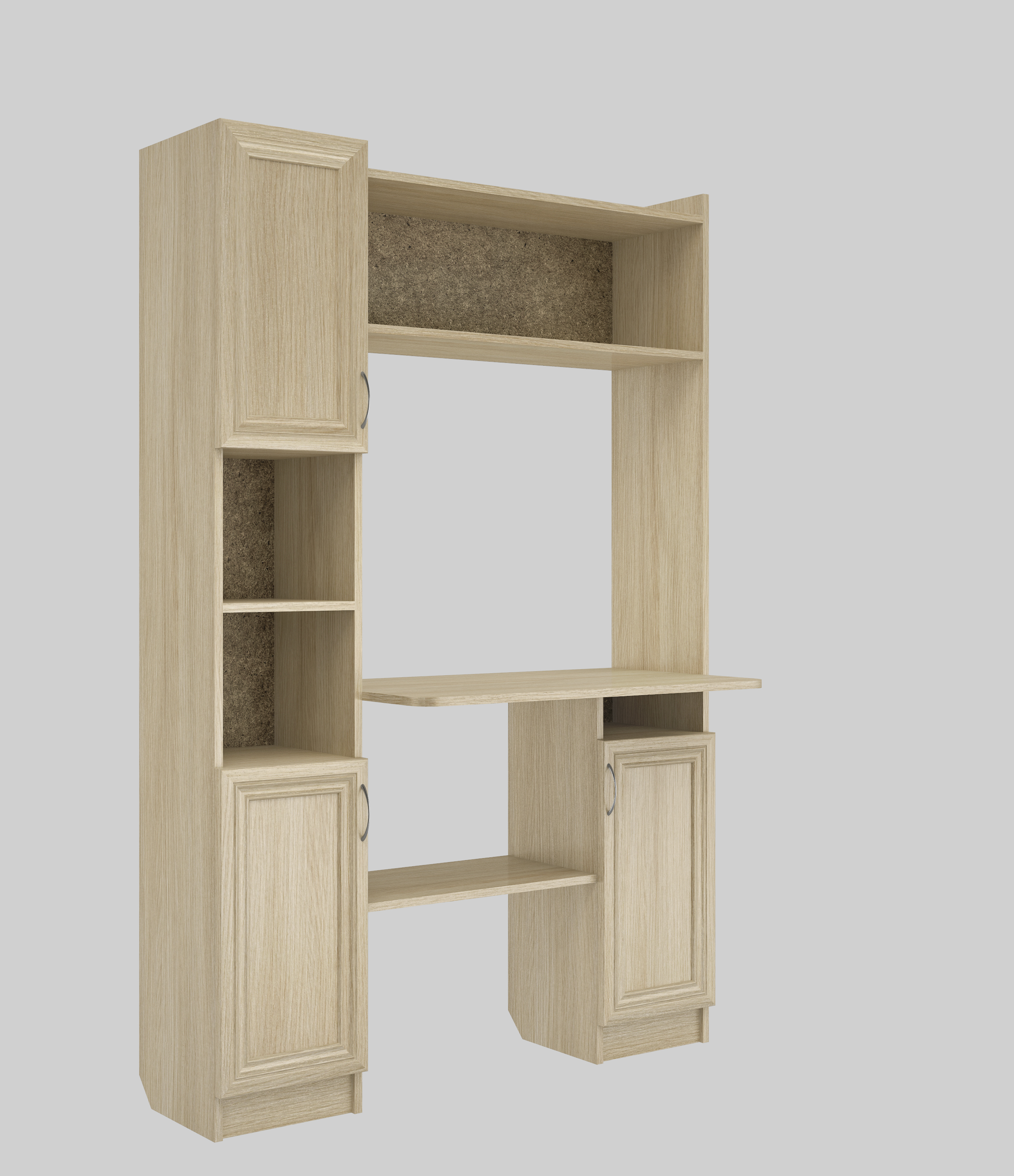 Уголок школьника №1 разработан как для школьников,так и для врослых пользователей.Отличается компактными размерами1700*1150*500 и функциональностью,что позволяет разместить его,даже в небольшом помещении.Корпус Выполнен из ЛДСП, с рамочными фасадами плёнка МДФ.