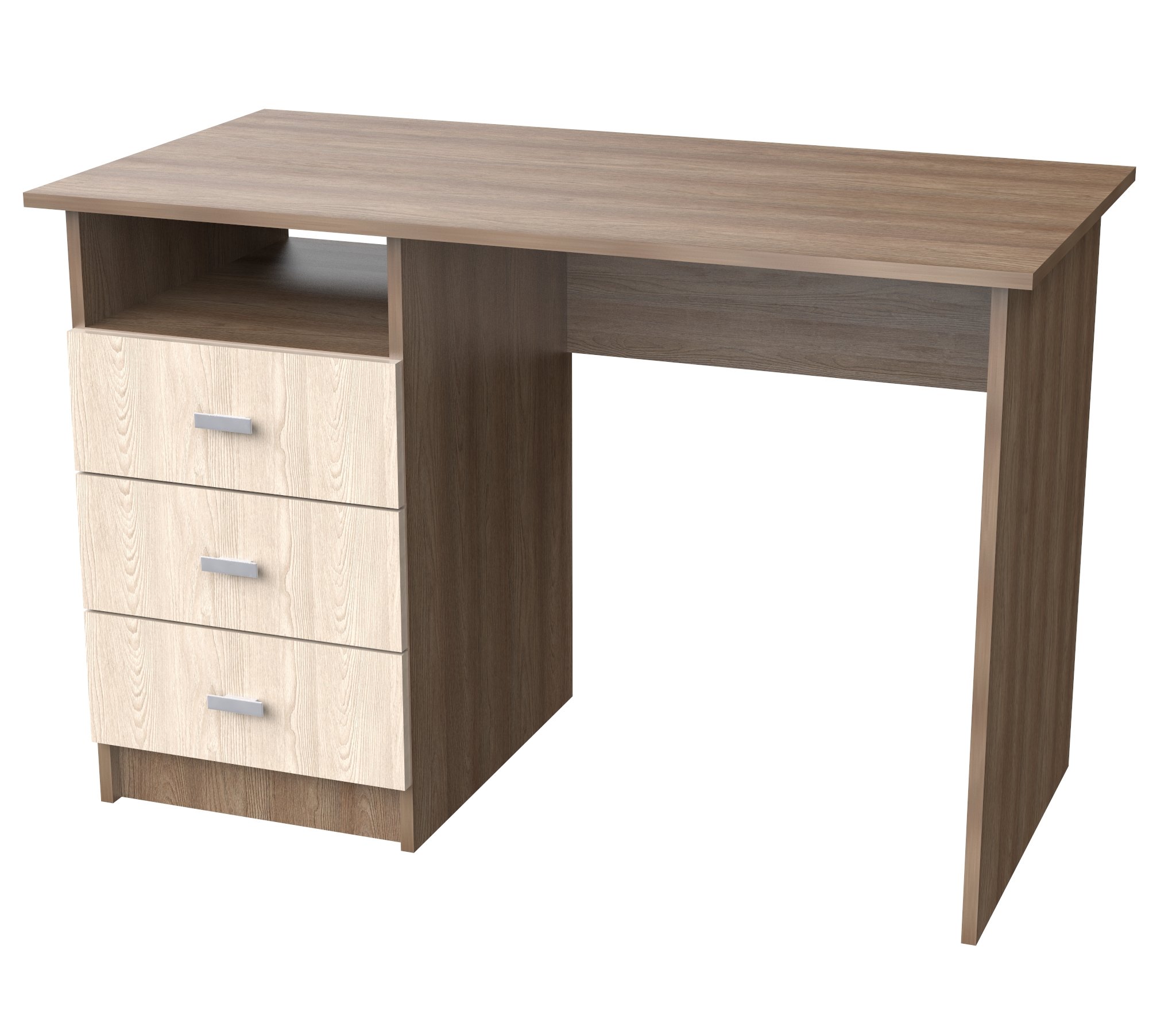 Стол СТ-5 изготовлен из ЛДСП.Оснащён тумбой с выдвижными ящиками.Сборка только как на фото,на другую сторону не предусмотрено.Ширина 110 см,Выс 75 см,глуб 57 см.Удобен в использовании как для кабинета,так и для школьников.