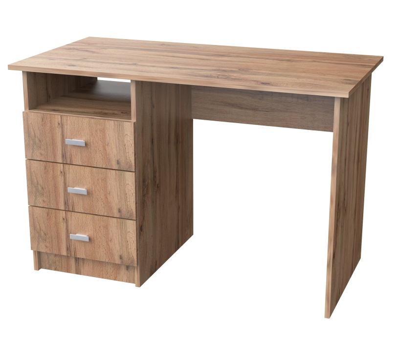 Стол СТ-5 изготовлен из ЛДСП.Оснащён тумбой с выдвижными ящиками.Сборка только как на фото,на другую сторону не предусмотрено.Ширина 110 см,Выс 75 см,глуб 57 см.Удобен в использовании как для кабинета,так и для школьников.