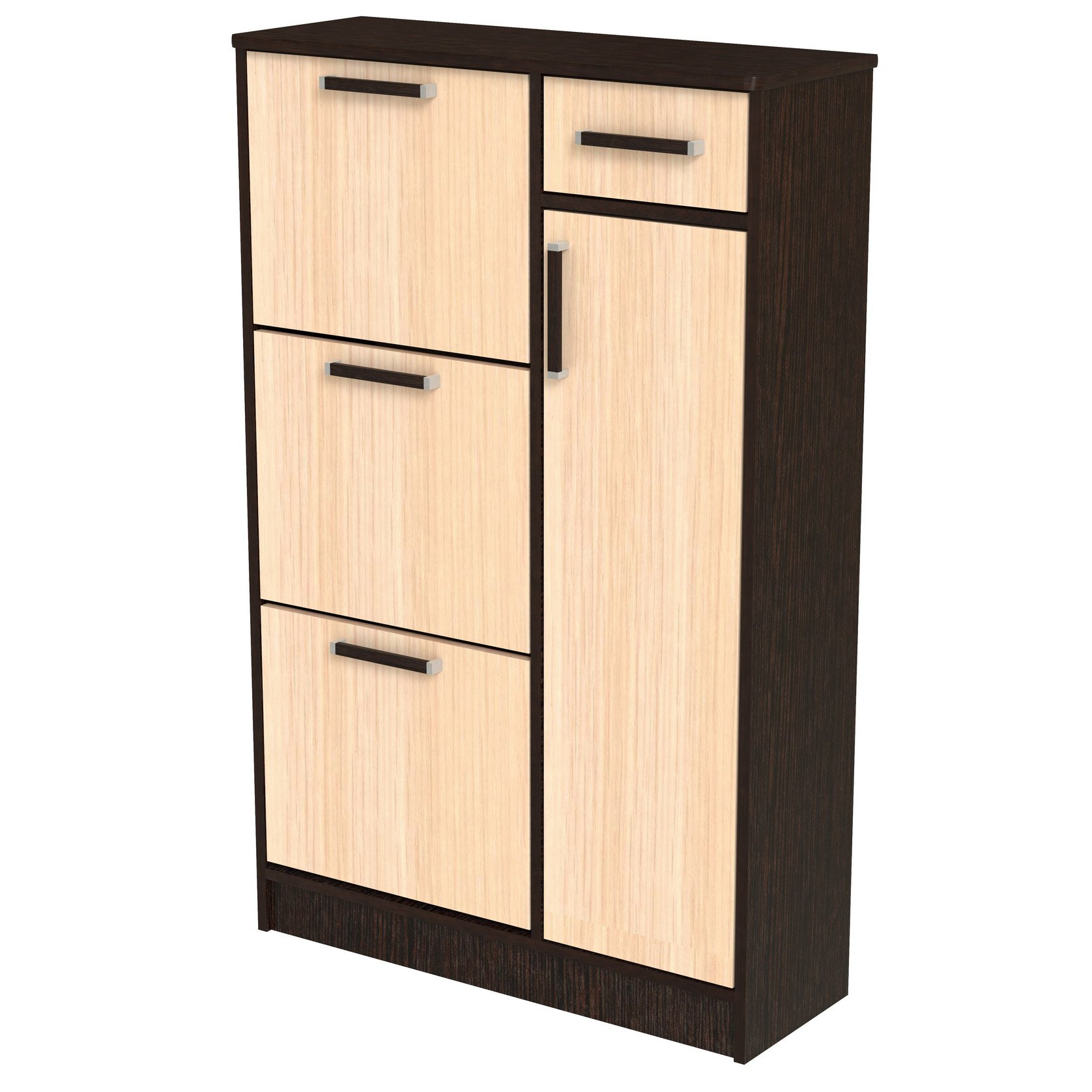 Обувница с максимальным количеством ящиков в классе. Она обладает тремя откидными нишами под обувь, выдвижным ящиком и распашной дверью со съемными полками.Тумба идеально встанет в Вашей прихожей и не займет много места.Корпус и фасады из качественного ЛДСП.Производитель оставляет за собой право менять фурнитуру.