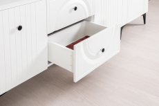 Ящики тумбы под ТВ установлены на направляющие скрытого монтажа с доводчиками.
