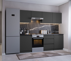 Кухонный гарнитур Леон прямой 240 см, диамант серый (Диамант серый)
