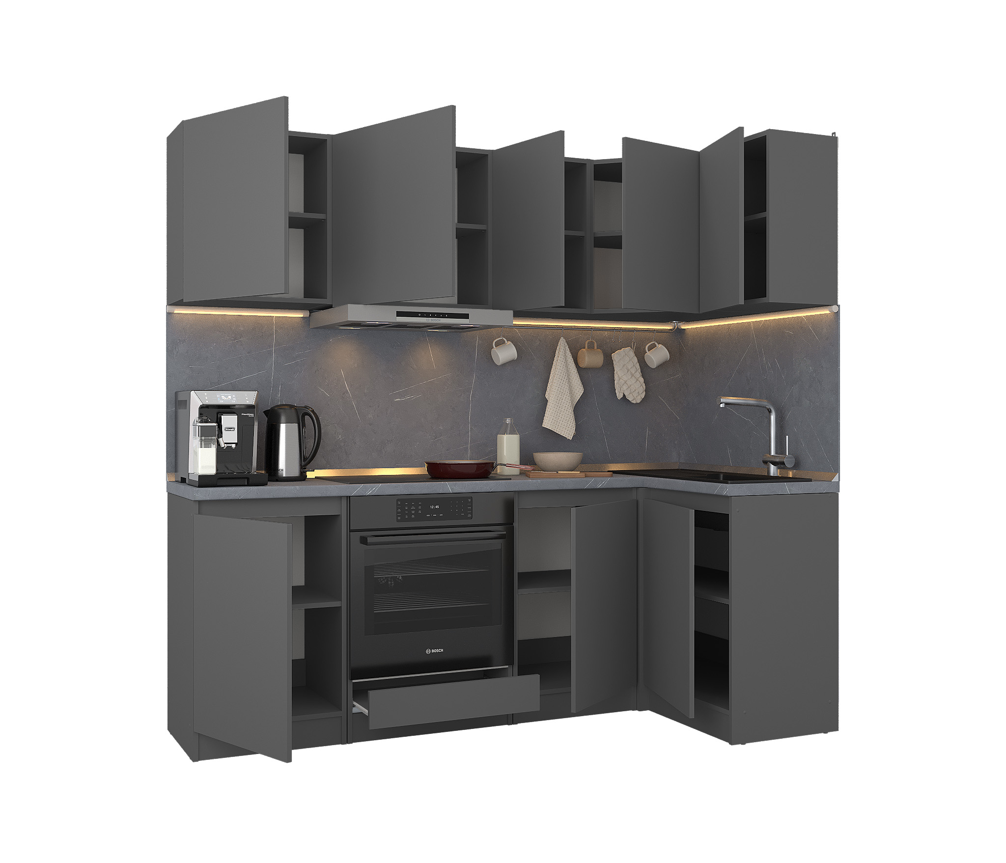 Кухонный гарнитур Леон угловой 210х100 см, диамант серый (Диамант серый)