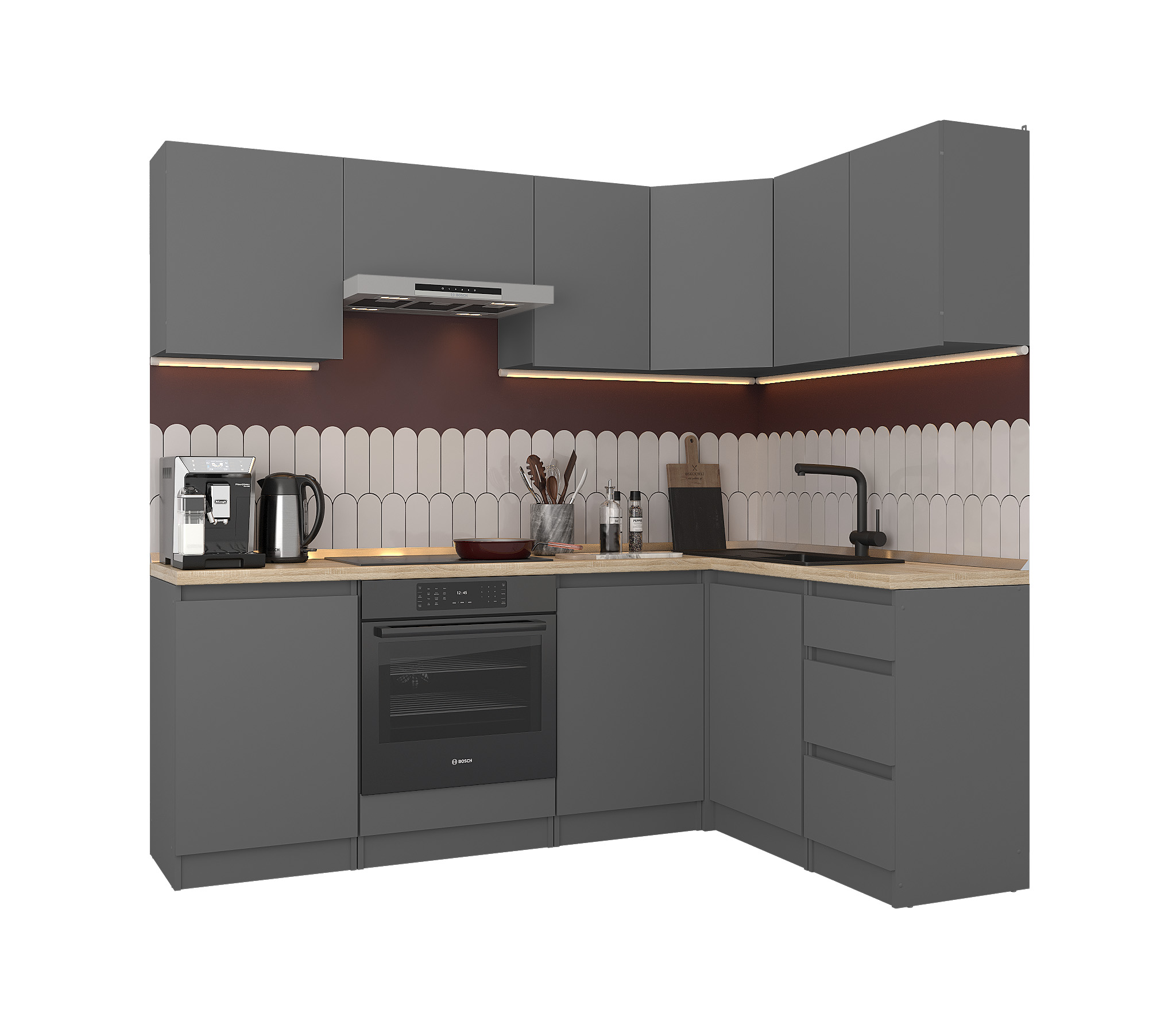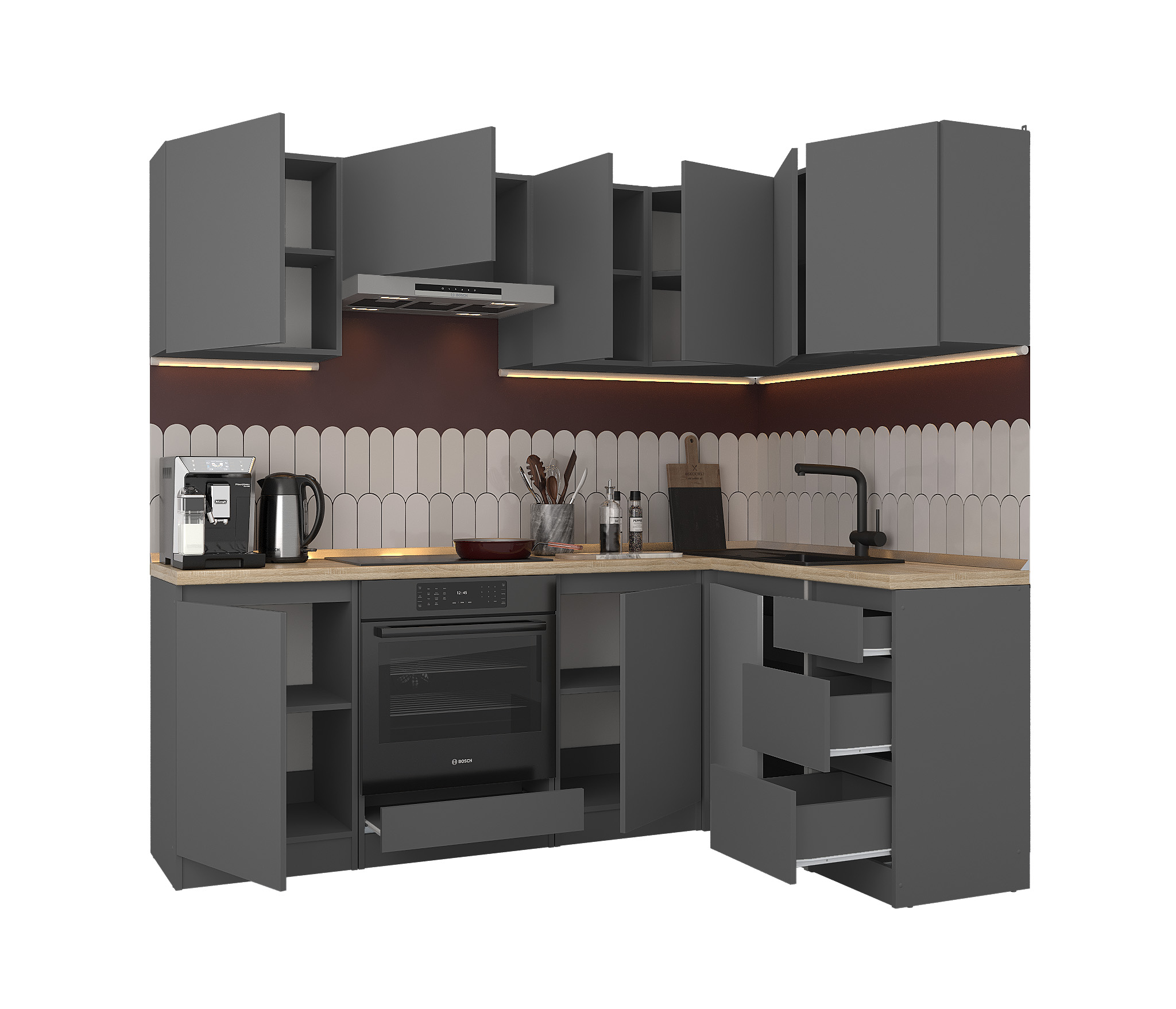 Кухонный гарнитур Леон угловой 210х140 см, диамант серый (Диамант серый)