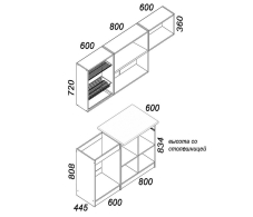 Рекомендуется установка накладной мойки шириной 600 мм (в комплект не входит).