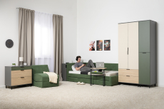 Односпальная кровать-тахта Марвел 90 с мгякой обивкой в дымчато-зеленом оттенке — прекрасное решение для современной и яркой комнаты для подростка или ребенка.