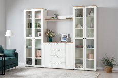 Шкаф-витрина Остин 16.394.02, белая шагрень, дуб золотой крафт Код R0000302068