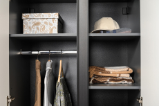 Сидней – стильная и функциональная прихожая, которая масштабируется под любую площадь помещения и высоту потолков. Минималистичные фасады в трендовом цвете без лицевой фурнитуры открываются за край либо нажатием (push-to-open). Большой выбор модулей: высота шкафов от 2050 до 2400 мм и полноразмерная глубина позволит максимально использовать полезное пространство. Вместительная система для хранения одежды, обуви и хозяйственных принадлежностей. Цветовое решение: ЛМДФ 16 мм Веллюто Капучино; ЛДСП 16 мм Антрацит.