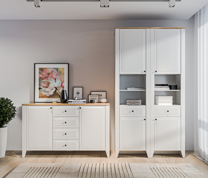 Монтана СБ-3547 Комод Белый Альпийский,Дуб Гамильтон/МДФ Дуб БелыйМонтана СБ-3554 Шкаф-пенал Белый Альпийский,Дуб Гамильтон/МДФ Дуб Белый