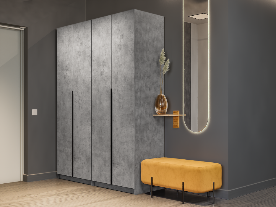 Шкаф складной Е1 Локер ("Гармошка") 162х52.5х220 см,с двумя комплектами полок и двумя модулями (бетон) Код I0000426723