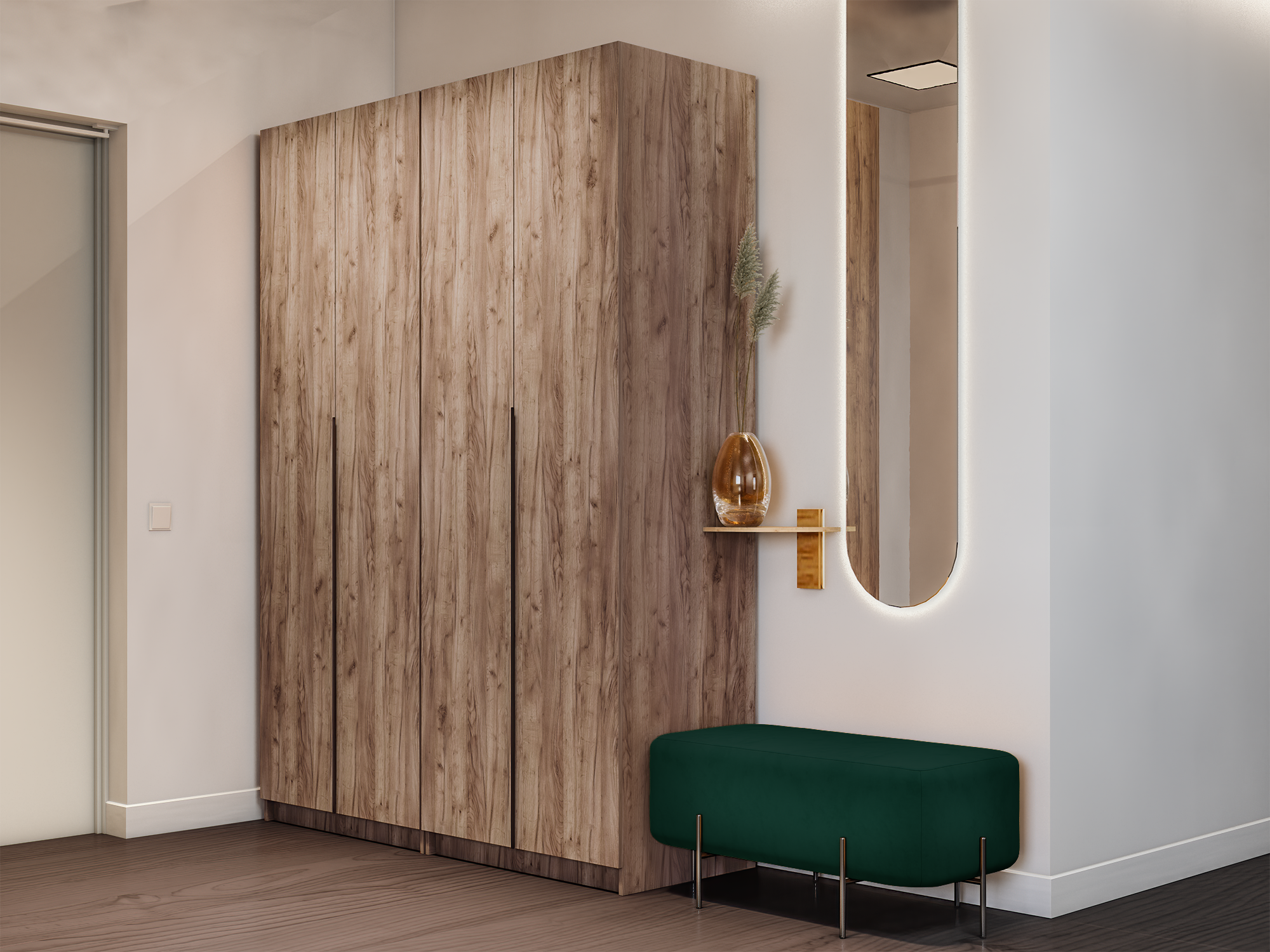 Идеально подойдет не только к вашему спальному гарнитуру, прихожей и детской, но и будет гармонично сочетаться со всеми элементами мебели. Не займет много места, но позволит вместить большое количество вещей. Внутреннее наполнение шкафа позволяет вместить не только верхнюю одежду и обувь, но и аксессуары. А удобное разделение секций поможет грамотно разместить все вещи в шкафу.