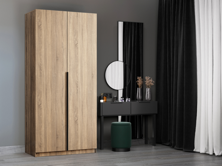 Локер — вместительный шкаф для одежды со складной системой открывания, отличающийся своим удобством в эксплуатации и легкой установкой. Идеально подойдет не только к вашему спальному гарнитуру, прихожей и детской, но и будет гармонично сочетаться со всеми элементами мебели. Не займет много места, но позволит вместить большое количество вещей. Внутреннее наполнение шкафа позволяет вместить не только верхнюю одежду и обувь, но и аксессуары. А удобное разделение секций поможет грамотно разместить все вещи в шкафу. Благодаря надежным полкодержателям - штифтам, полки шкафа могут выдерживать до 15 кг, штанга выдерживает до 60 кг. Вы сможете убрать сезонные вещи, постельное белье на верхние полки. Шкаф оснащен долговечной, ударостойкой кромкой ПВХ, которая защищает его торцы от сколов и повреждений, что обеспечит вам комфортное и долгое использование гардероба. Складная система дверей WingLine L экономит внешнее пространство за счет складывания дверей и обеспечивает их надежную фиксацию в открытом виде. Данный механизм обеспечивает плавный ход и исключает образование слепых зон. Система рассчитана на 40 000 циклов «открывание-закрывание». Для эффективной организации пространства внутри корпуса, двери оснащены минимальным выступом. Шкаф оснащен удобной минималистичной ручкой, изготовленной из алюминия.В производстве используется безопасное ЛДСП международного класса Е1, что способствует безопасному использованию на протяжении всего срока эксплуатации. Поэтому вы можете использовать его в детской комнате, и ваш ребенок будет в безопасности. *Изображения товара могут отличаться по цвету и фактуре от фактического внешнего вида.