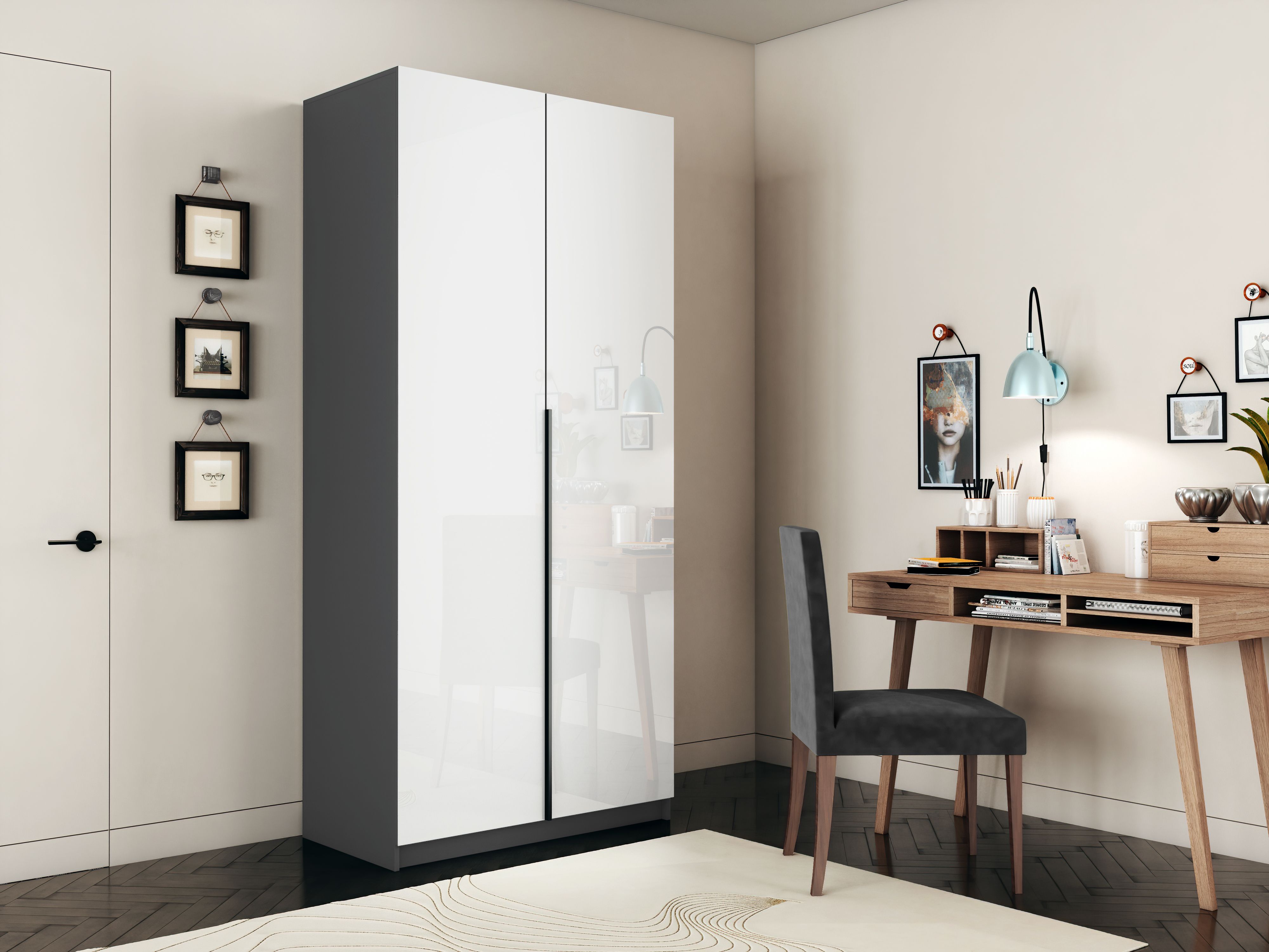 Шкаф распашной Е1 Локер 101x52.5x220 см, с белым стеклом , полками и модулем (Серый диамант)