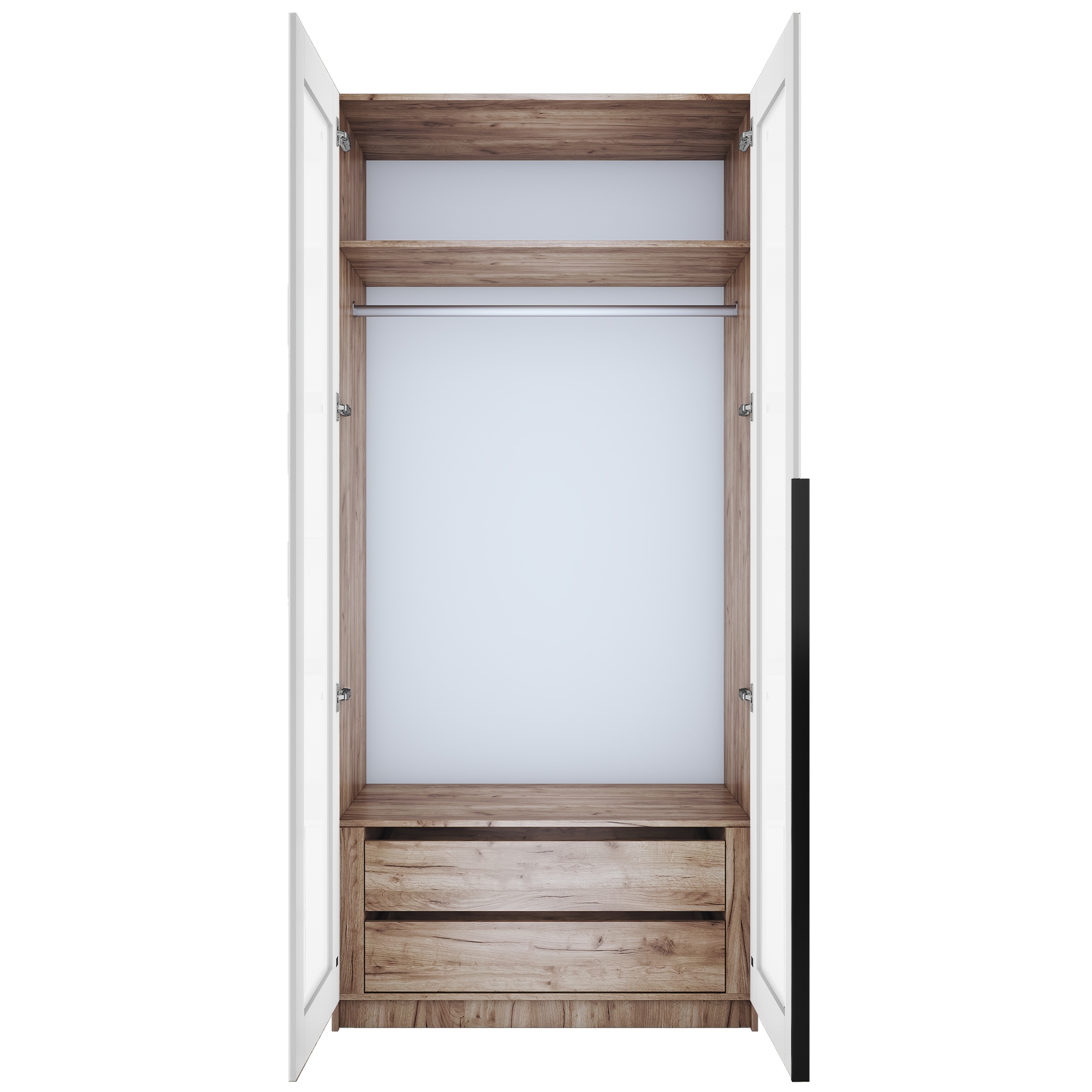 Шкаф распашной Е1 Локер 101x52.5x220 см, с белым стеклом и модулем (Дуб/крафт/табак)
