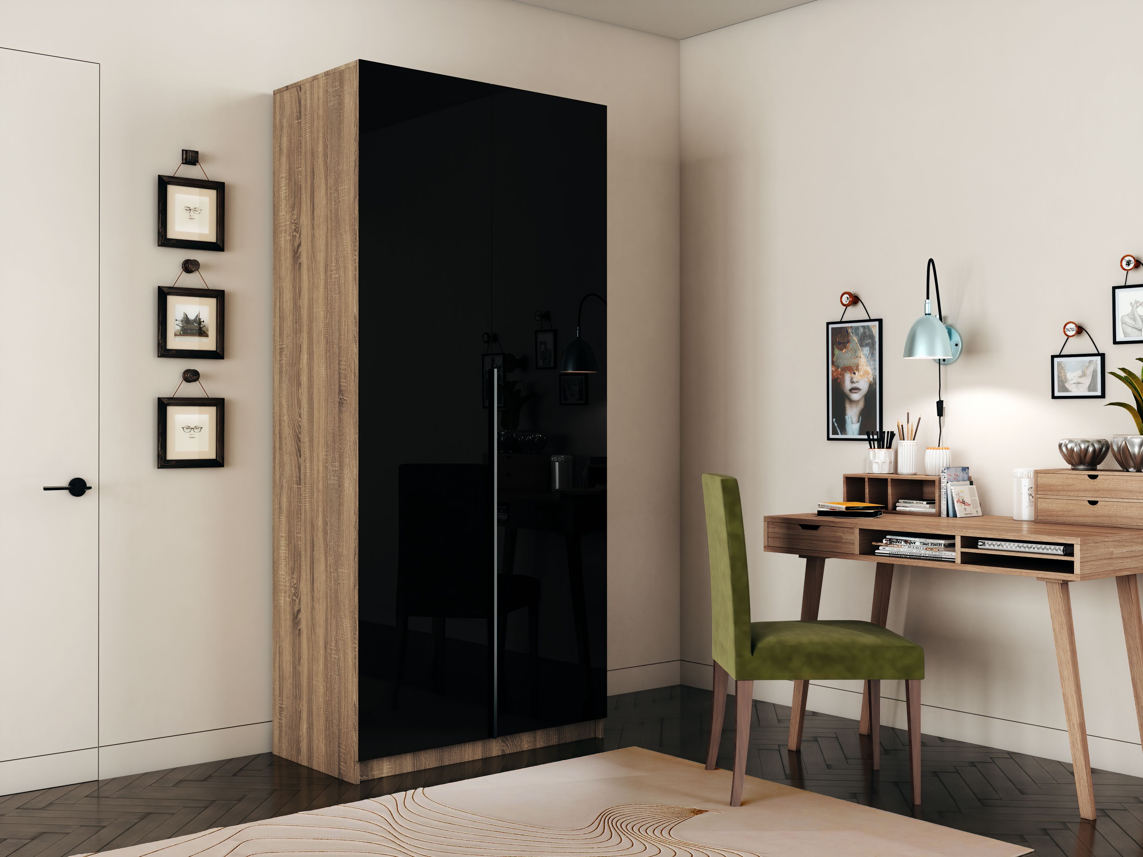 Шкаф распашной Е1 Локер 101x52.5x220 см, с черным стеклом и модулем (Дуб сонома)