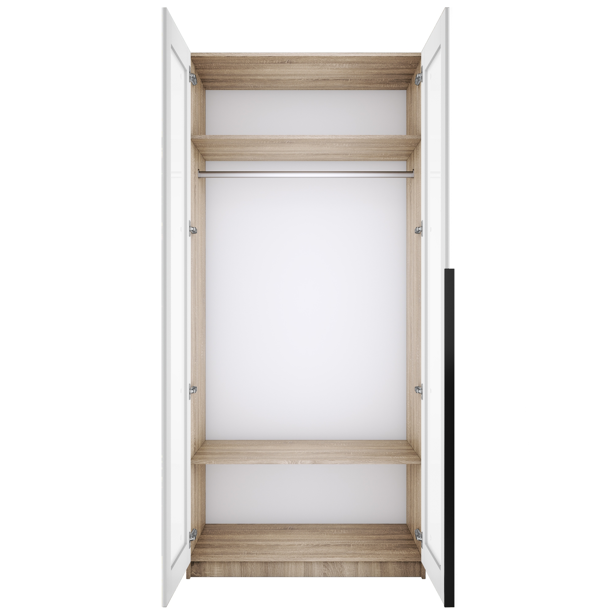 Шкаф распашной Е1 Локер 101x52.5x220 см, с белым стеклом (Дуб сонома)