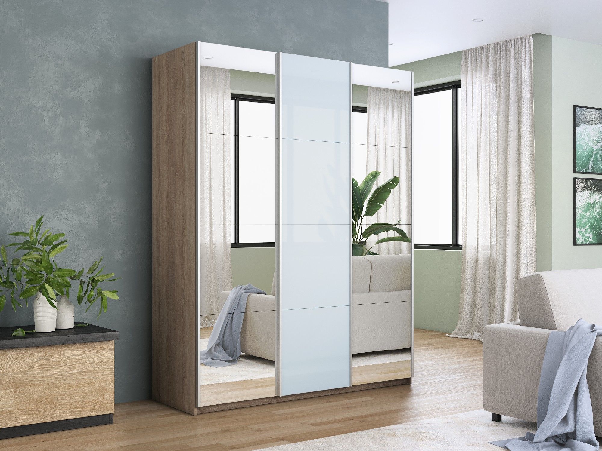Отзывы о Столплит Шкаф-купе Прайм 3-х дверный Зеркала/Стекло белое/Доводчики 210х57х230 Дуб сонома