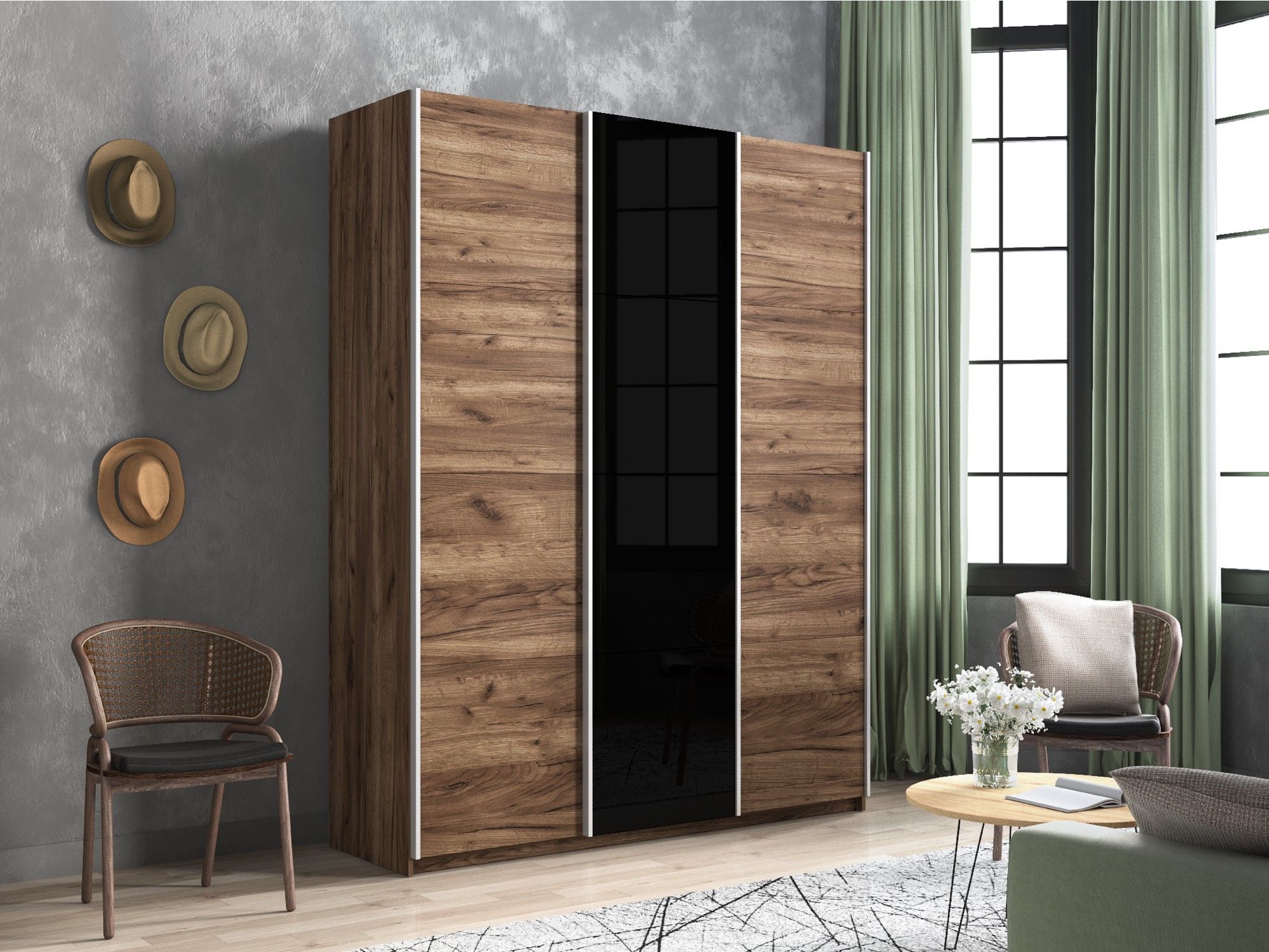 Отзывы о Столплит Шкаф-купе Прайм 3-х дверный ДСП/Стекло черное/Доводчики 210х57х230 Дуб/крафт/табак